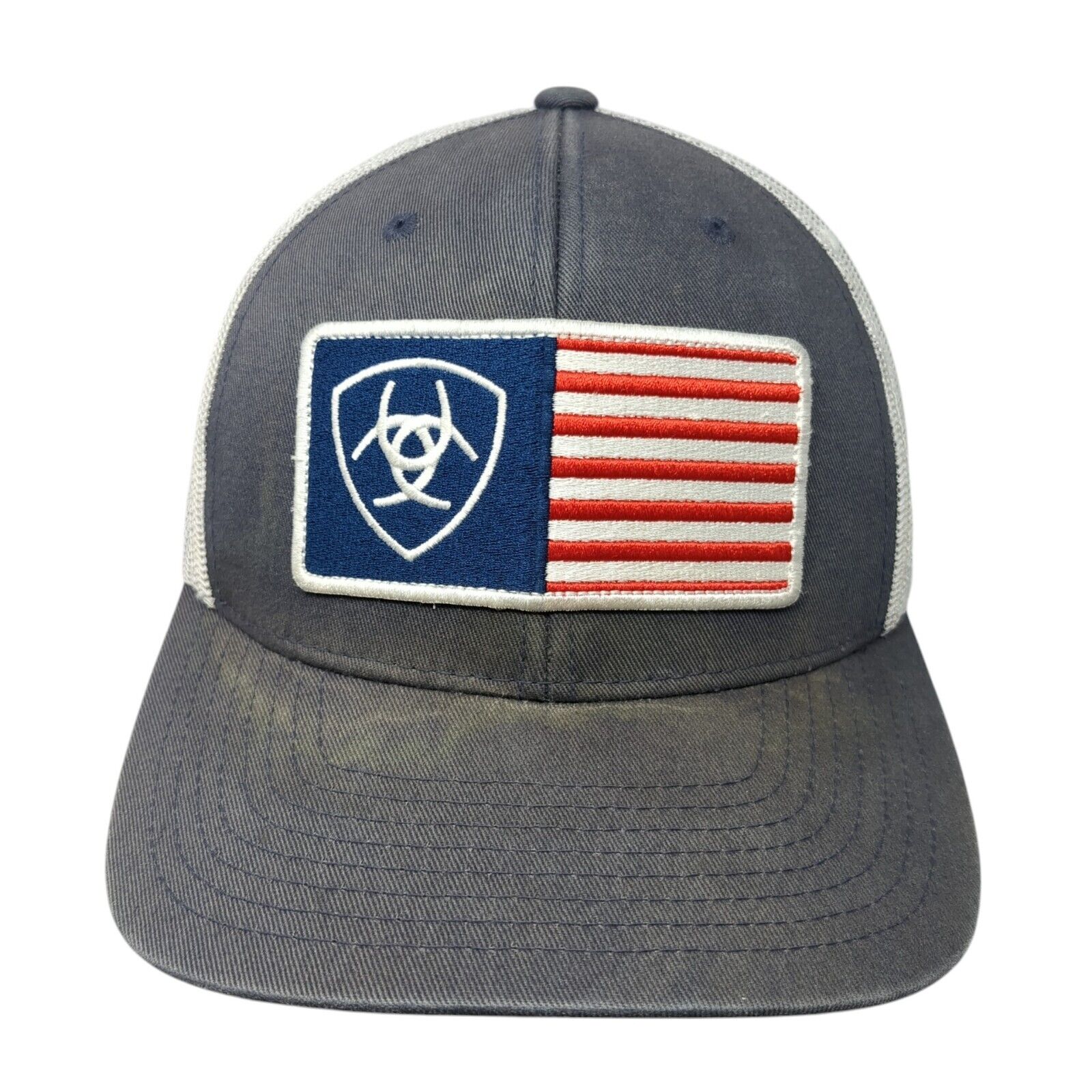 Ariat Flag Patch Snapback Trucker Hat Blue One Size Adjustable Mesh Back 6 Panel