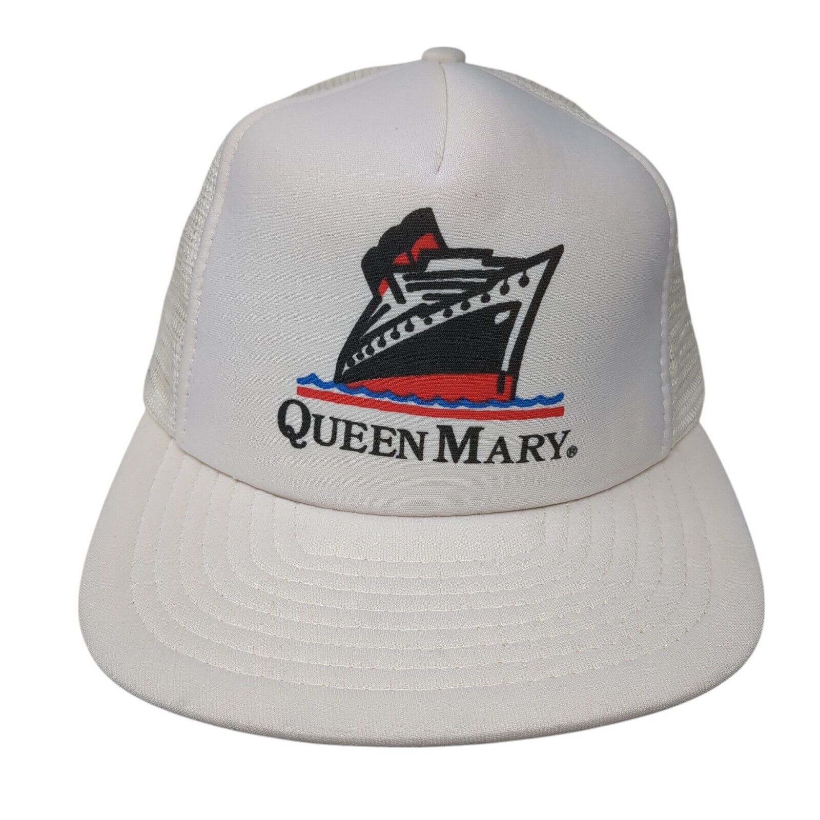 Vintage Queen Mary Cruise Ship Snapback Mesh Back Trucker Hat White OSFA