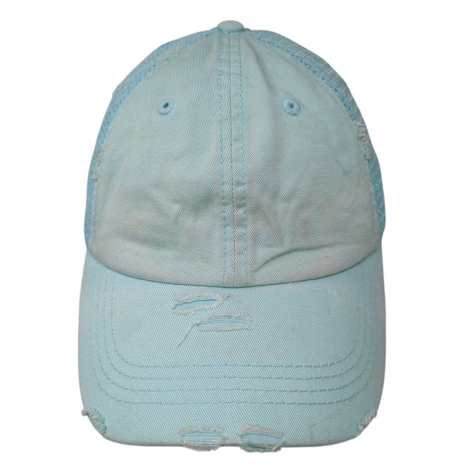 KB ETHOS Vintage Strapback Trucker Hat Ponytail Blue One Size Mesh Back
