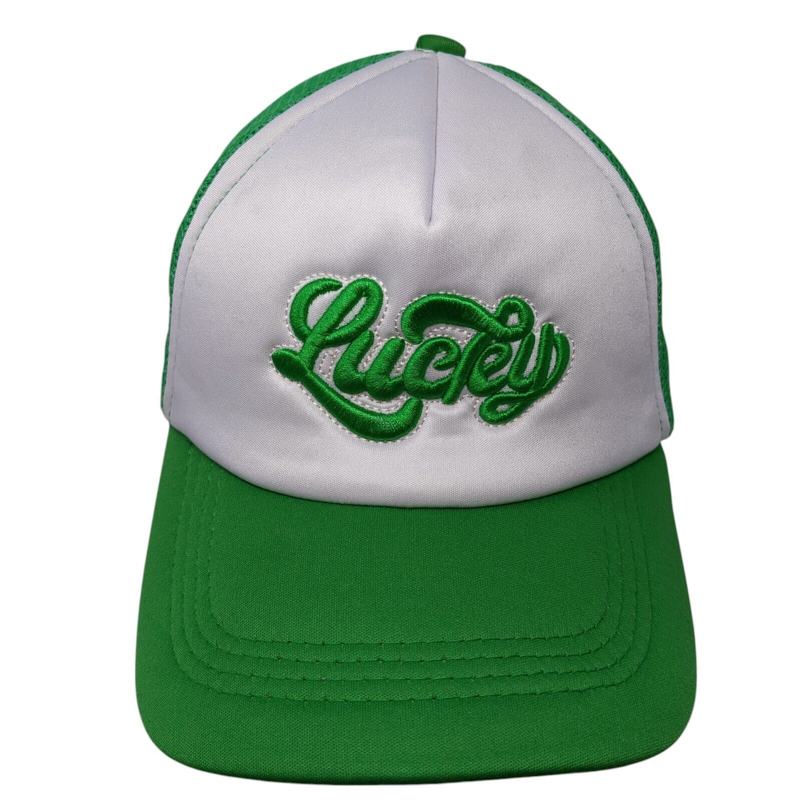 Lucky Snapback Trucker Hat Green One Size Adjustable Embroidered Mesh Back