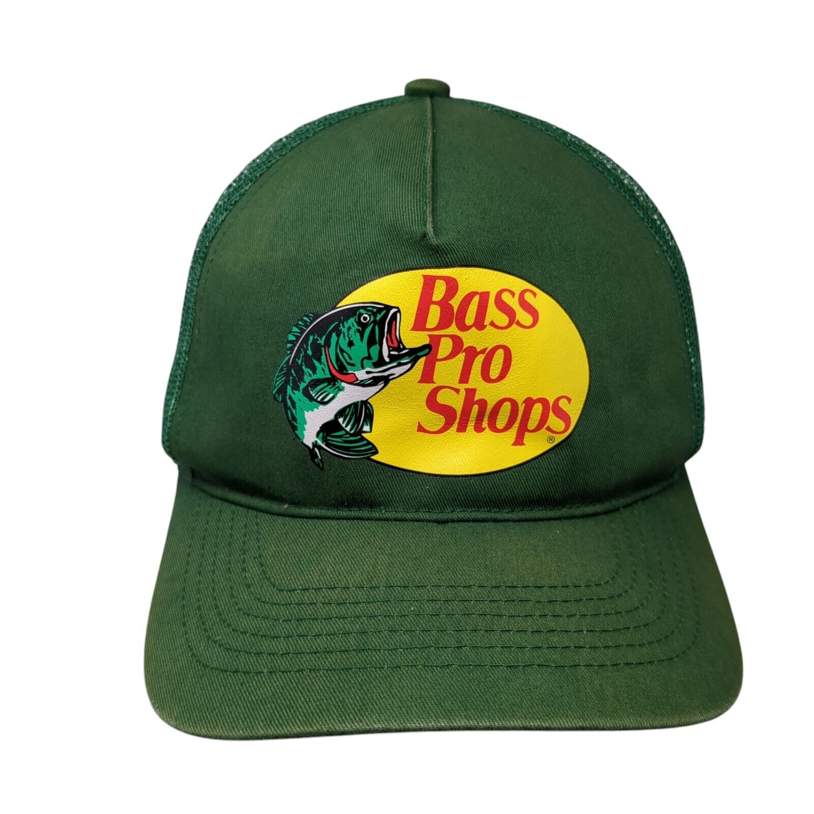 Bass Pro Shops Snapback Trucker Hat Green OS Adjustable Mesh Back Gone FishingCondition: This Bass Pro Shops Hat has blemishes...