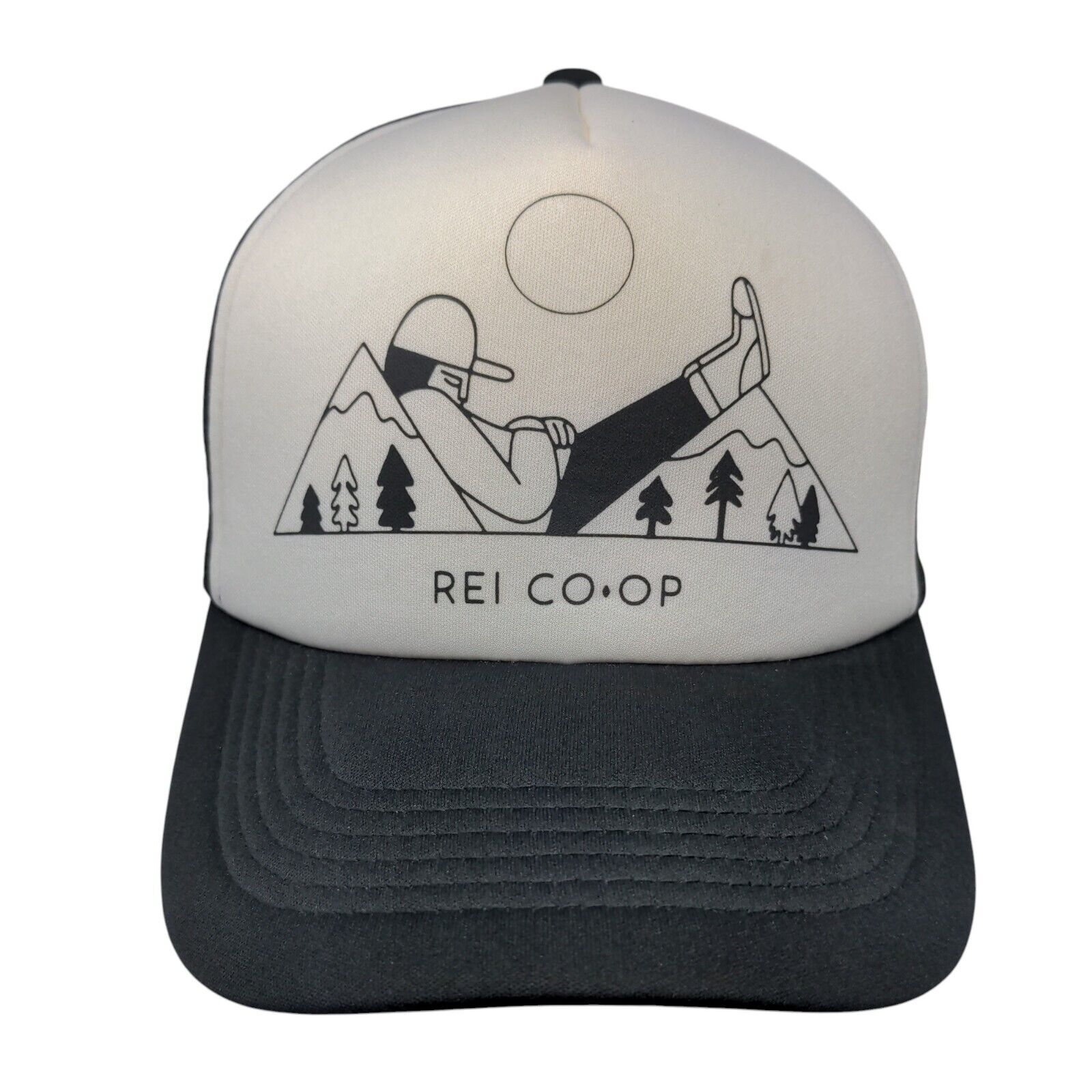 REI Co-op Mountain Climber Snapback Trucker Hat Black OSFA Mesh BackCondition: This REI Hat has blemishes on the outside. Sold...