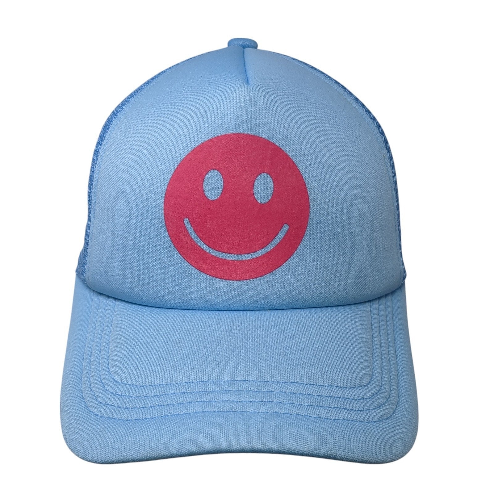 Smiley Face Snapback Trucker Hat Blue One Size Lightweight Adjustable Mesh Back