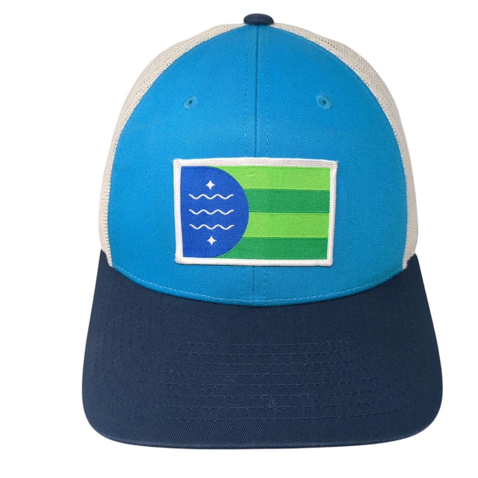 Bellingham Flag Patch Snapback Trucker Hat Blue One Size Mesh BackCondition: This hat has blemishes on the inside. Sold as...