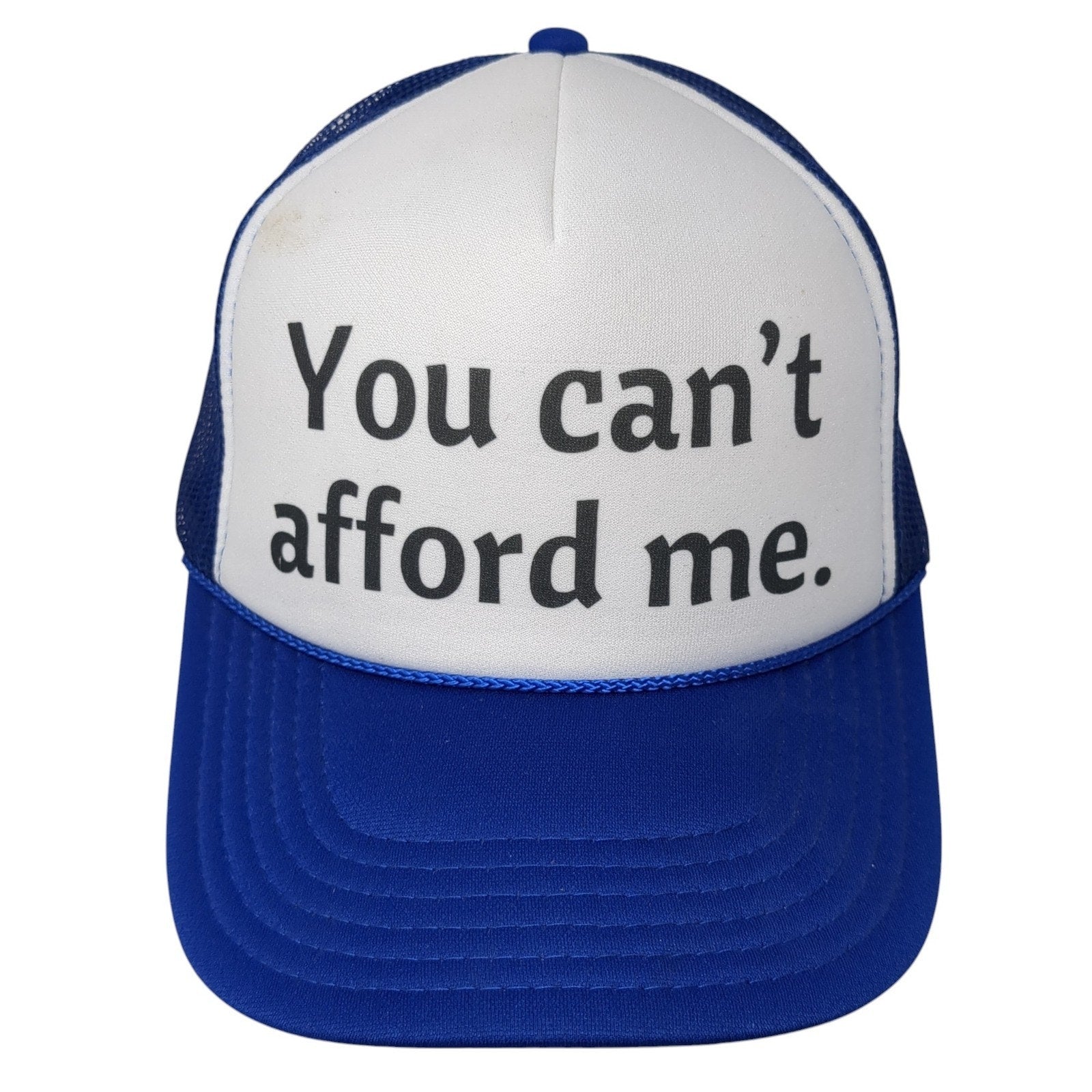 You Can't Afford Me Snapback Rope Trucker Hat Blue One Size Mesh BackCondition: This hat has blemishes on the outside....