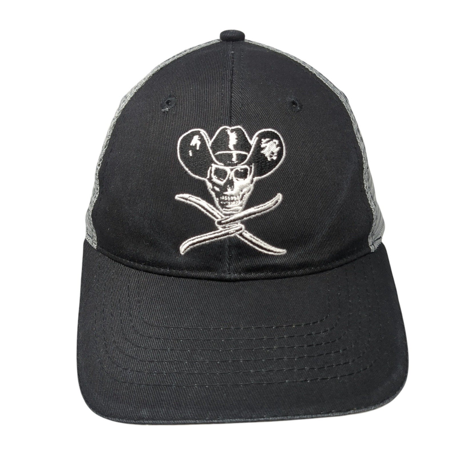 Twisted X Boots Strapback Mesh Back Trucker Hat Embroidered Skull LogoCondition: This hat has blemishes on both the inside and...
