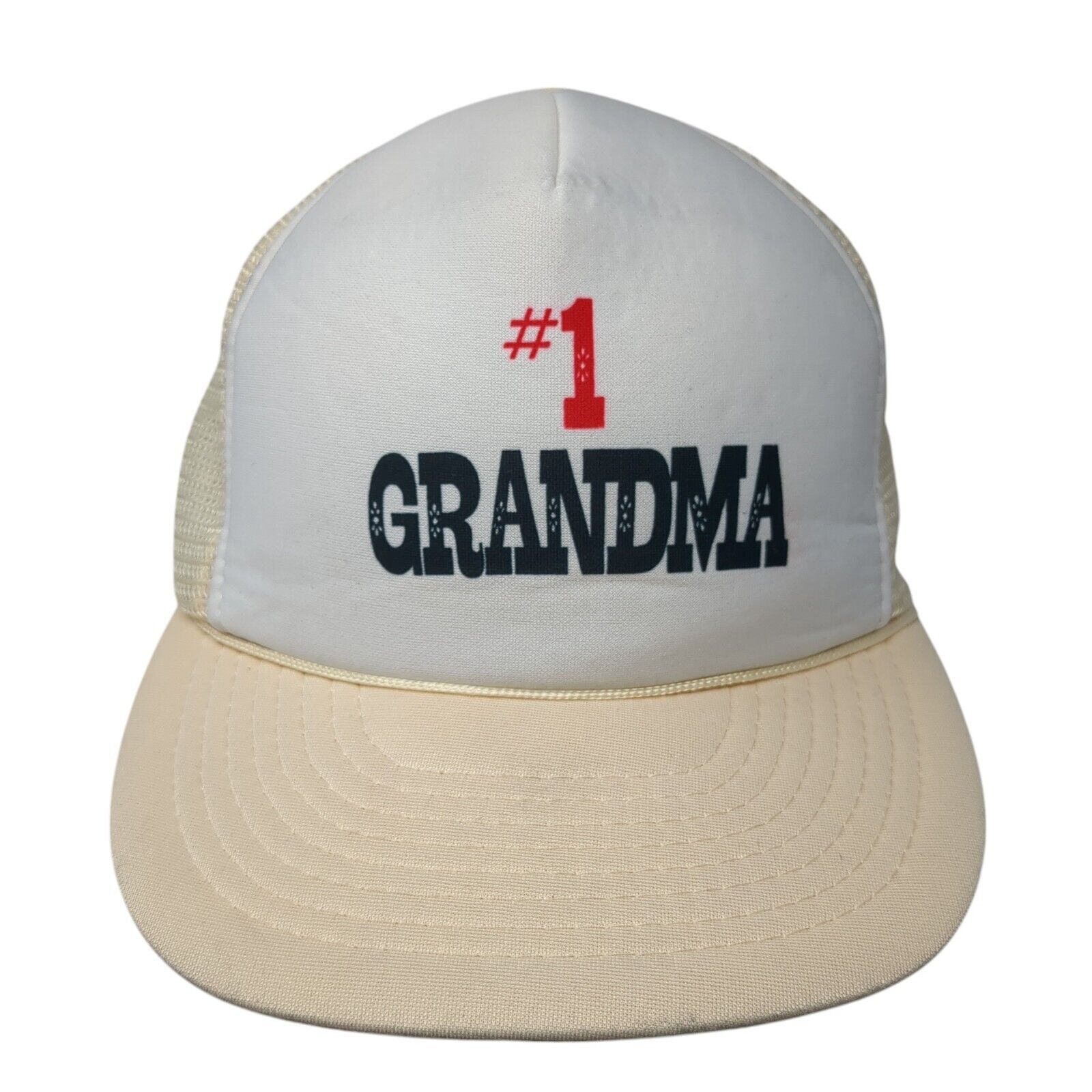 #1 Grandma Snapback Rope Trucker Hat Tan One Size Mesh Back AdjustableCondition: This Unbranded Hat has blemishes on both inside...