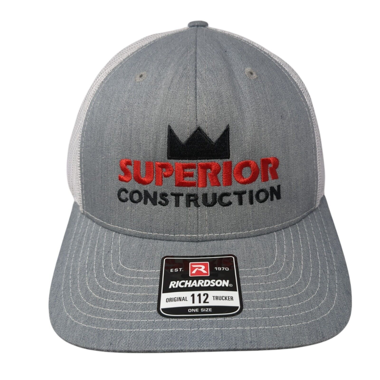 Superior Construction Snapback Trucker Hat Gray OS Adjustable Mesh Richardson