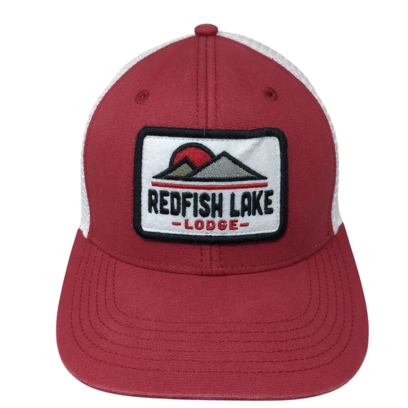 Redfish Lake Lodge Snapback Trucker Hat Red One Size Adjustable Mesh Back Legacy