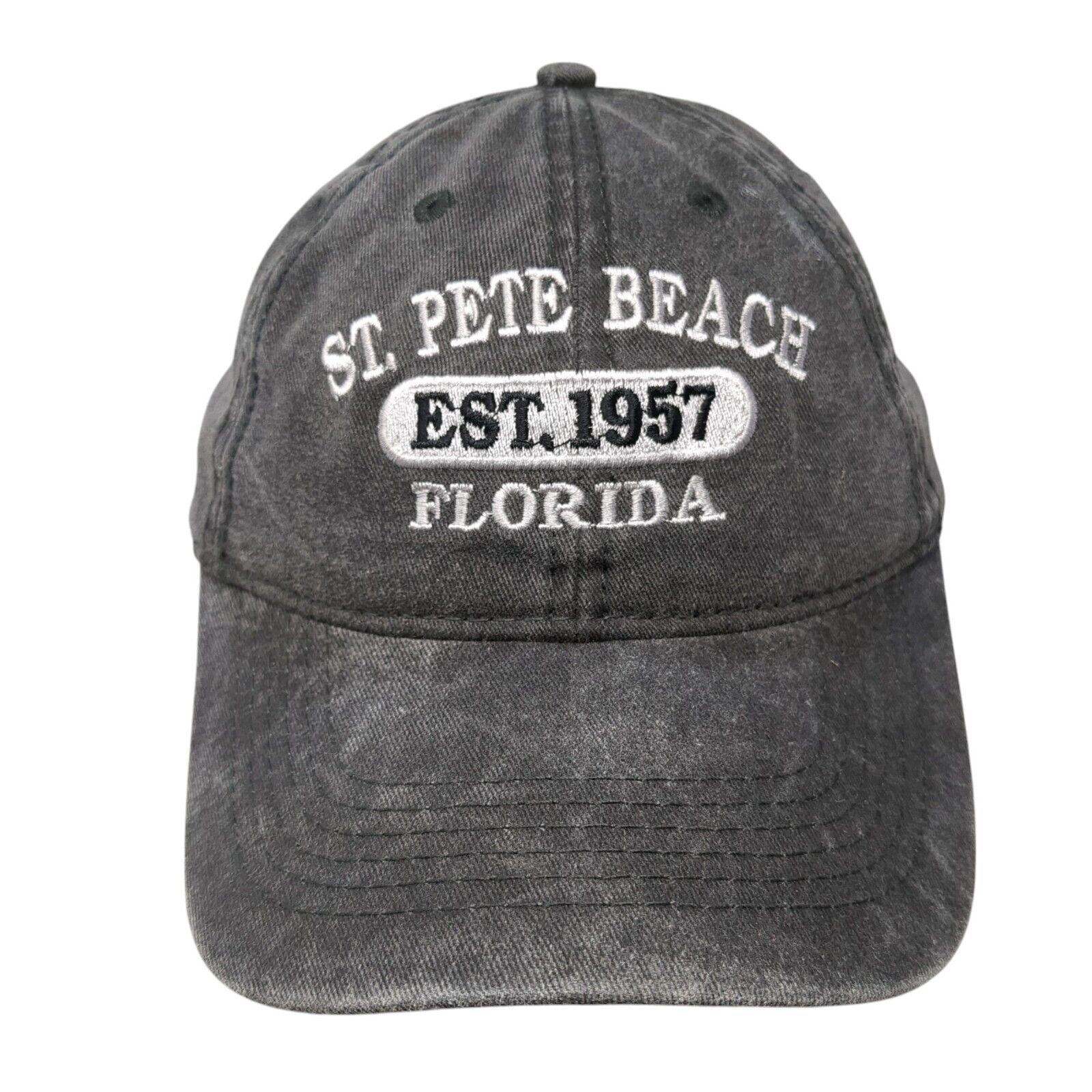 St. Pete Beach Florida Slideback Hat Gray One Size Adjustable 6 PanelCondition: This Unbranded Hat has blemishes on both inside...