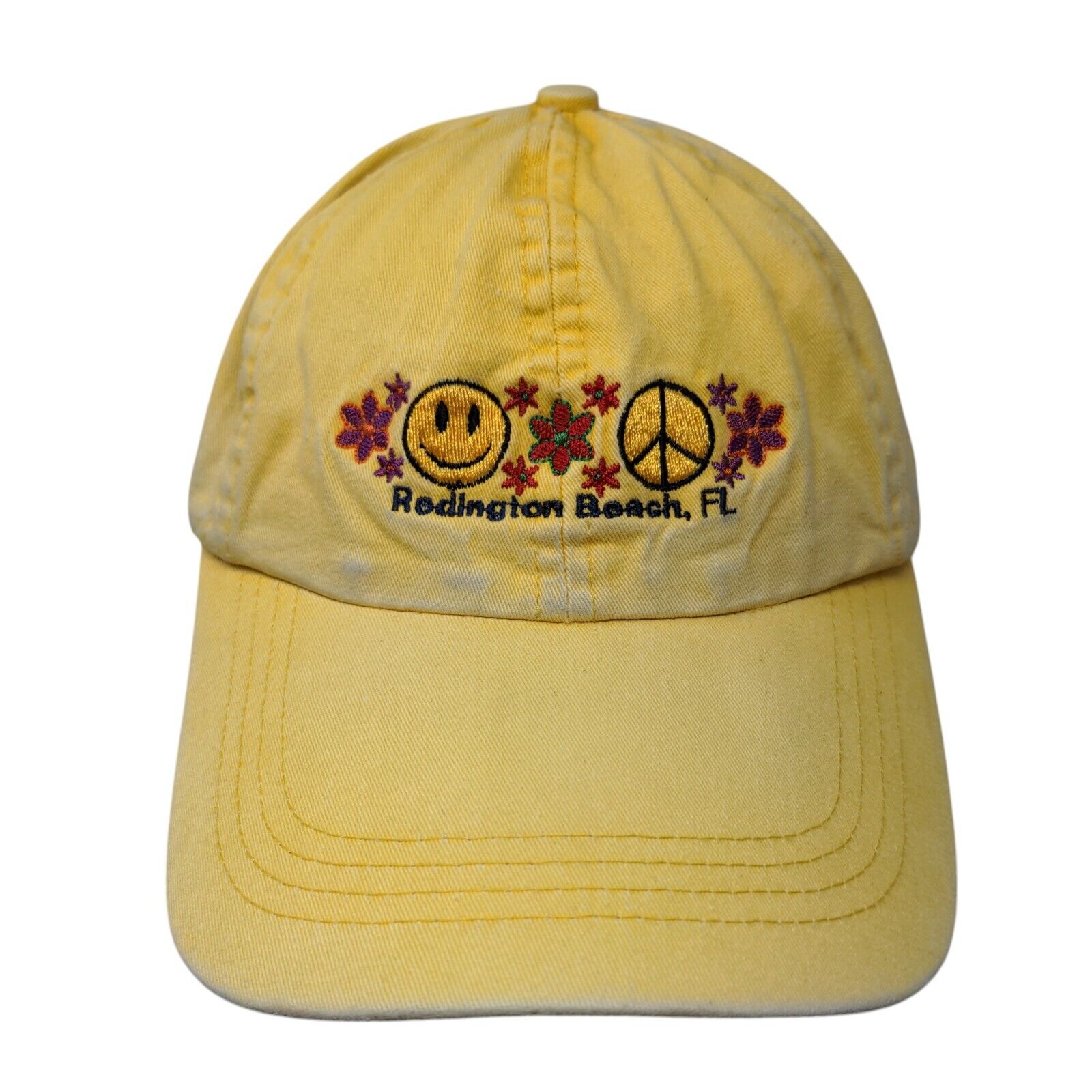 Smiley Peace Flowers Redington Beach FL Strapback Hat Yellow OSFA Jhats