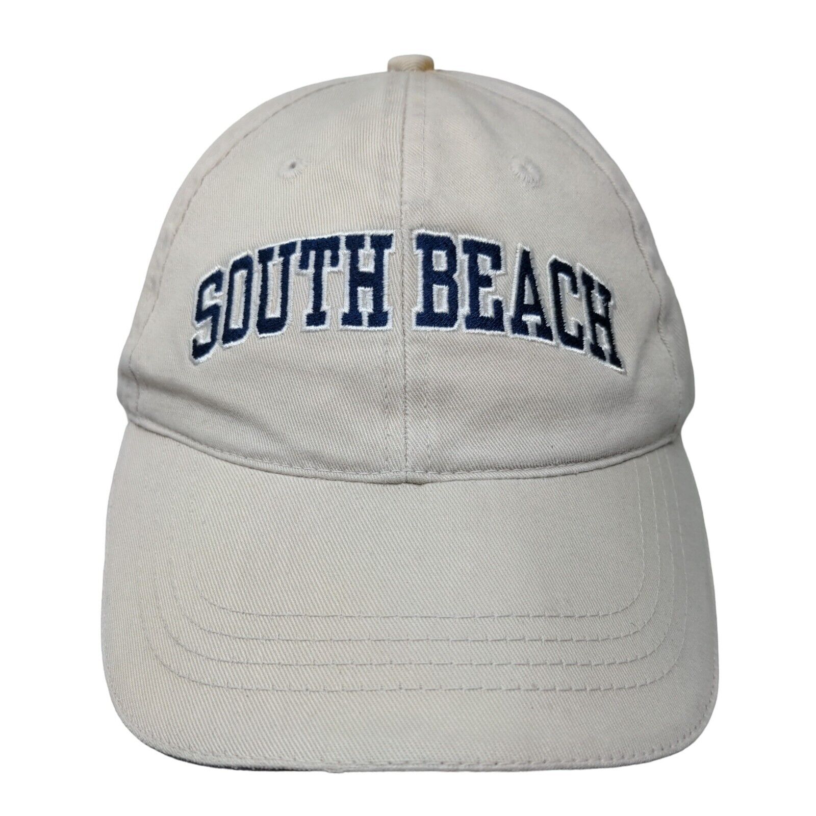 South Beach Slideback Hat Tan One Size Adjustable Embroidered 6 Panel JhatsCondition: This Jhats Hat has blemishes on both inside...
