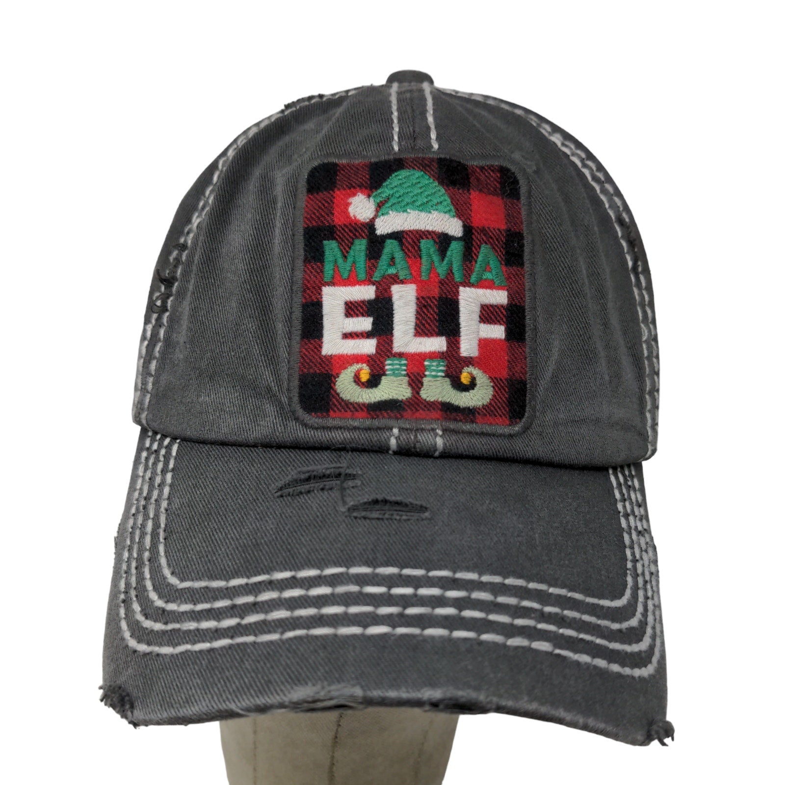 KBethods Women's Christmas Hat Gray Mama Elf Embroidered DistressedThis KBethods Women's Christmas Hat is looking good! There is a blemish...