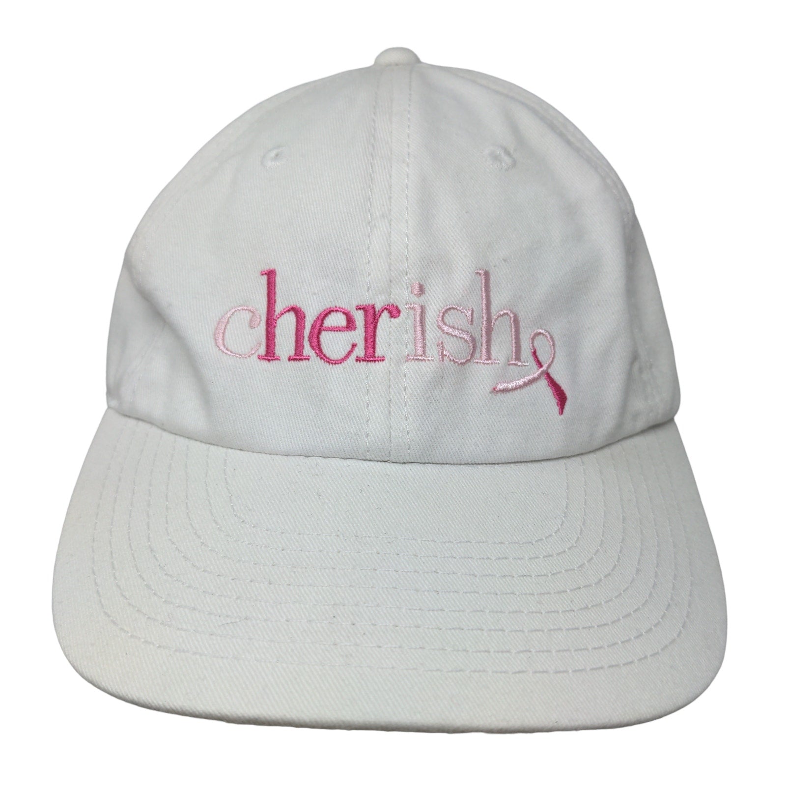Cherish Women's Slideback Hat White Adjustable Embroidered Logo Breast CancerThis Cherish Women's Slideback Hat is looking good! There is a...