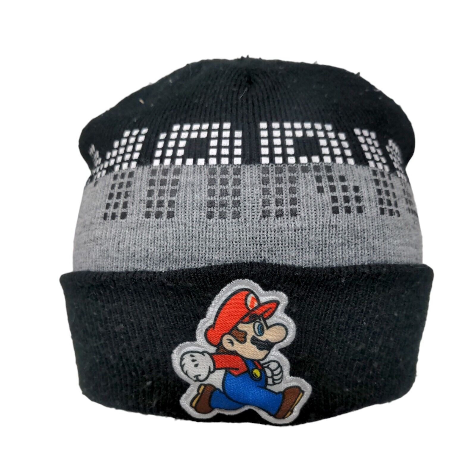 Super Mario Youth Beanie Hat Multicolor OSFM Patch Stretch Knitted Cuffed