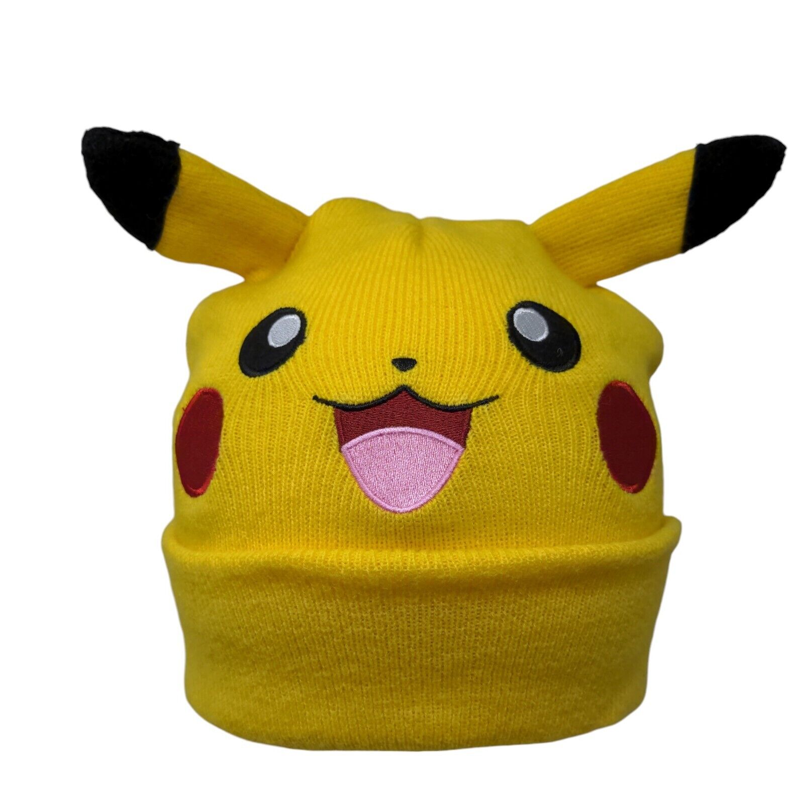 Pokemon Pikachu Youth Cuffed Beanie Hat Yellow OSFM Knit Stretch Ear Embroidered