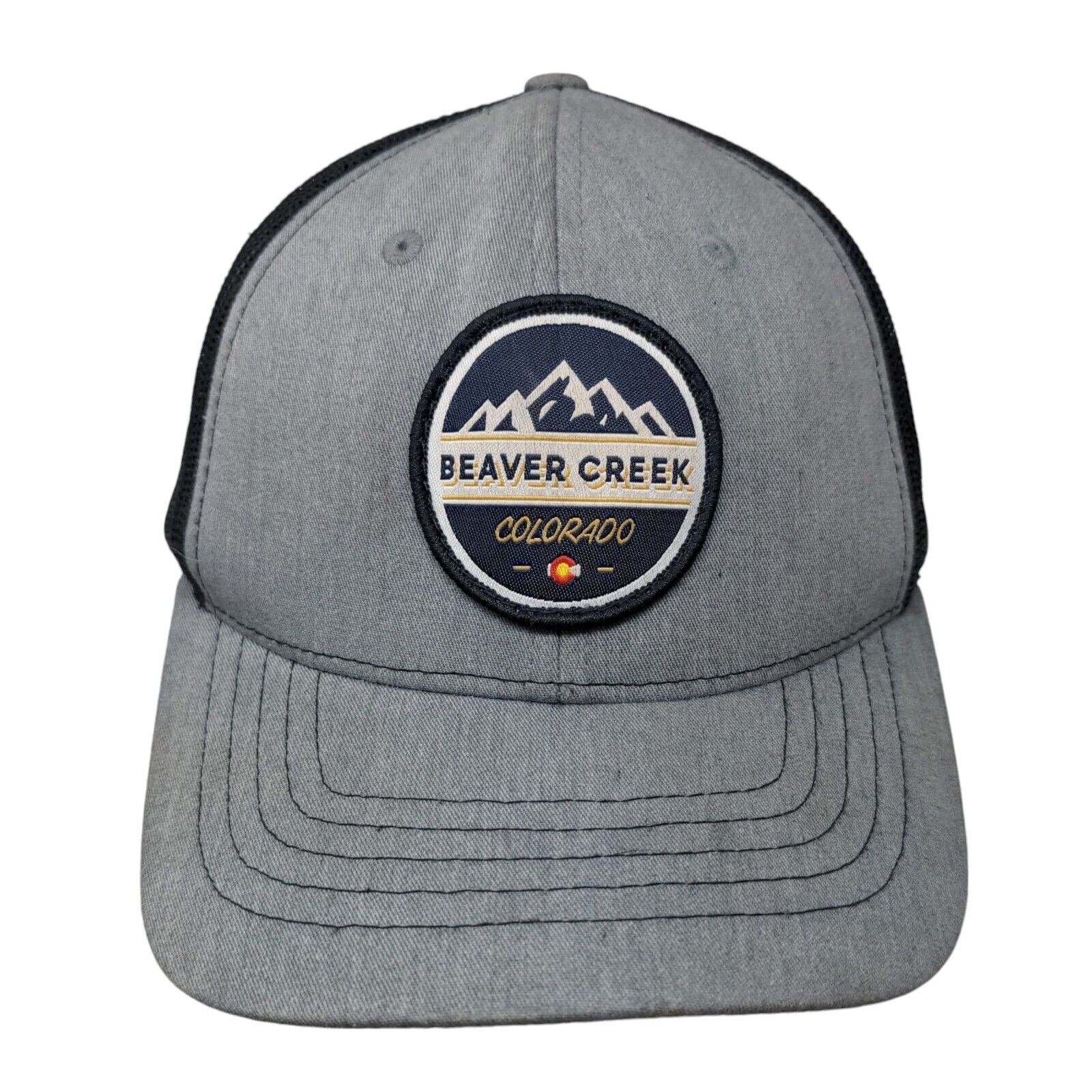 Beaver Creek Colorado Snapback Mesh Back Trucker Hat Gray Youth 6 PanelCondition: This Richardson Hat has blemishes on both inside...