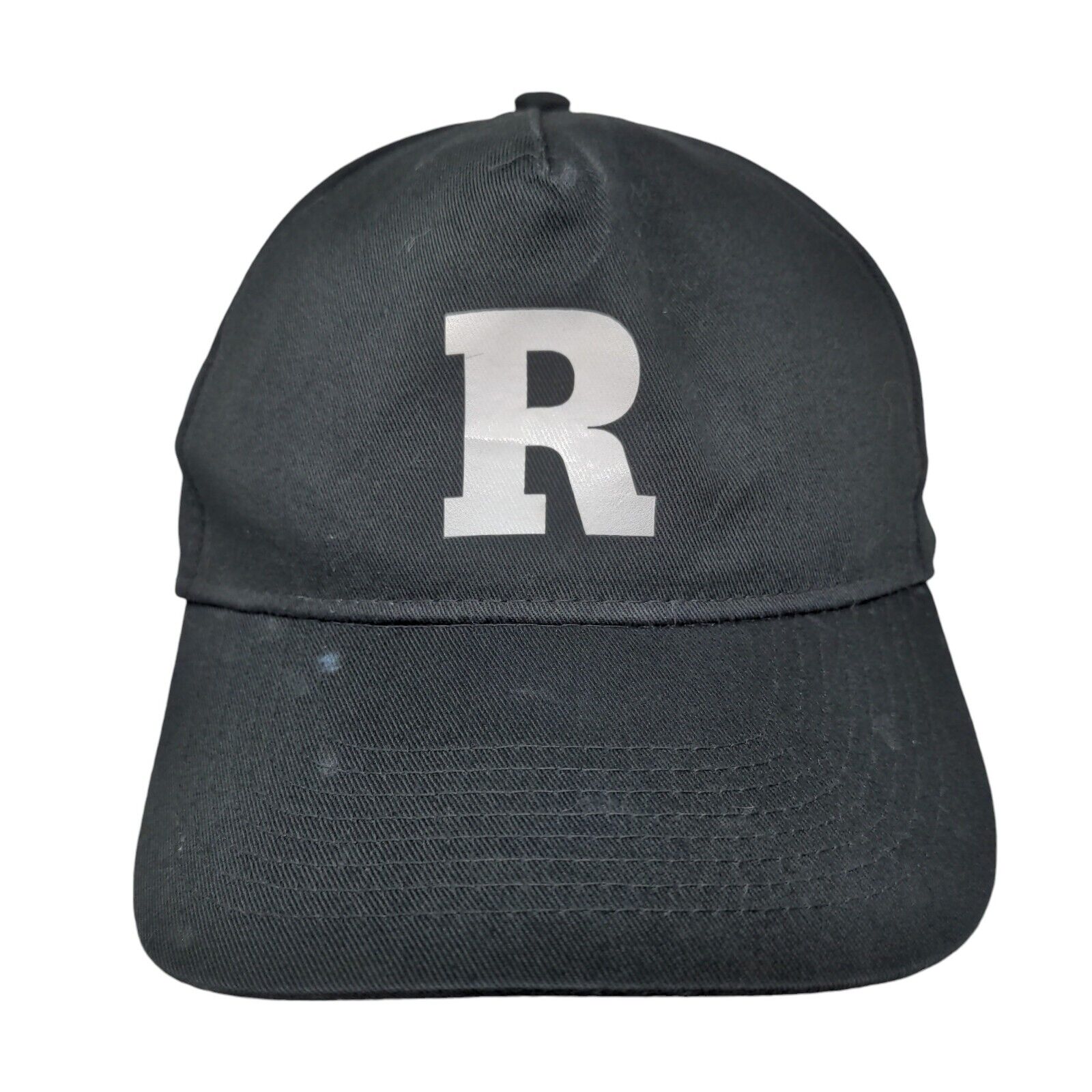 R Initial Youth Snapback Hat Black One Size Adjustable Vented Holes 6 PanelCondition: This Augusta Sportswear Hat has blemishes outside....