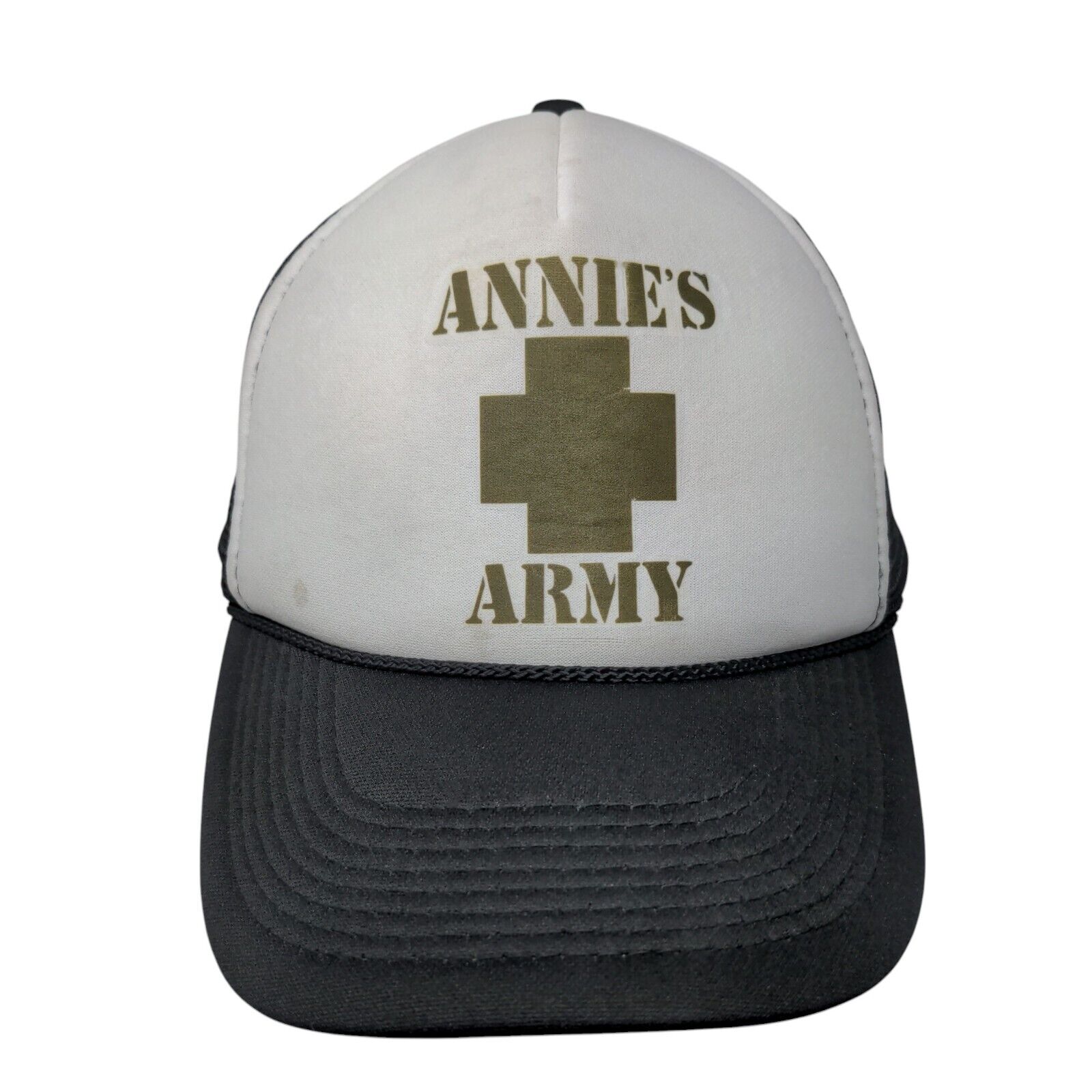 Annie's Army Snapback Trucker Hat Black OSFM Adjustable Mesh Back Rope Otto