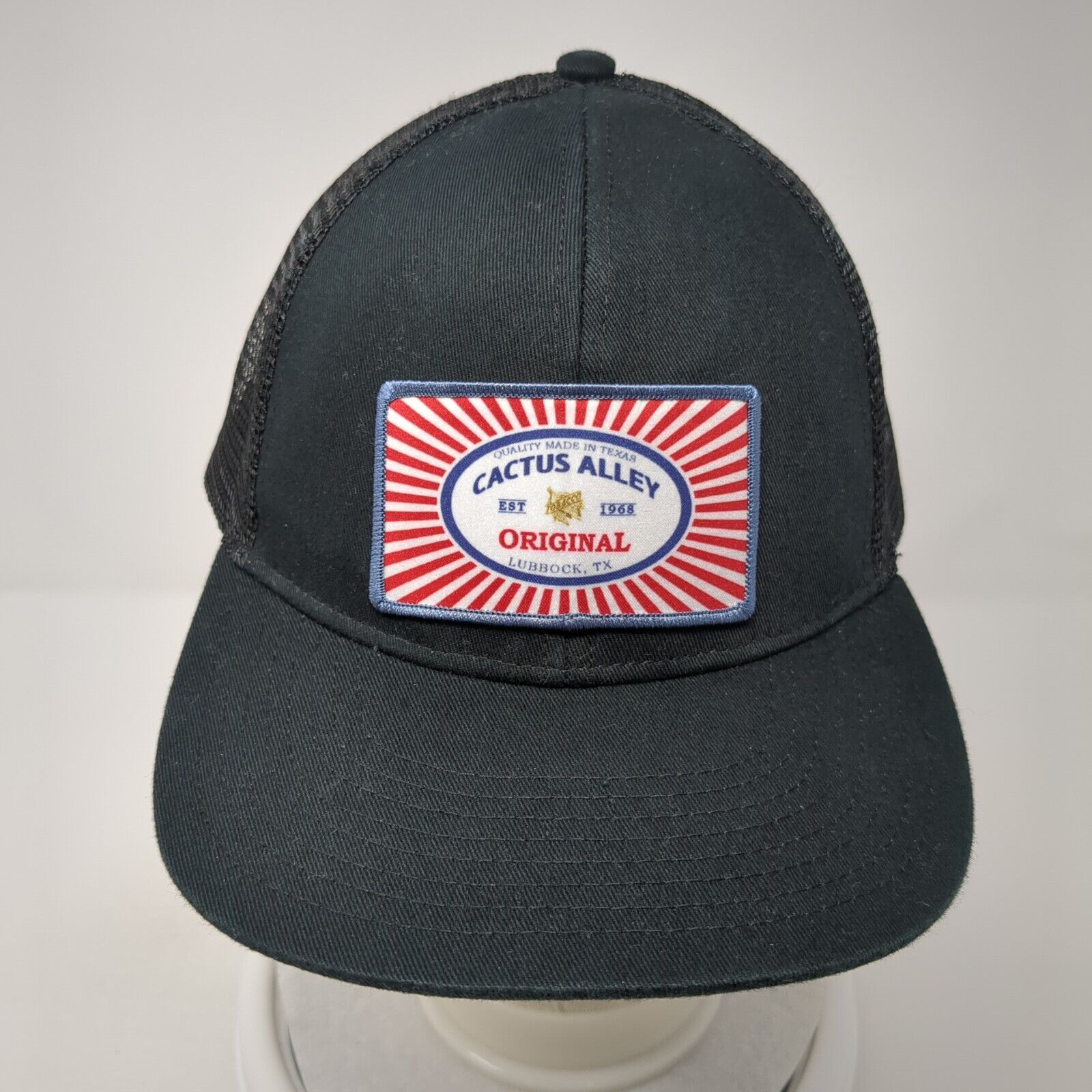 Cactus Alley Patch Snapback Trucker Hat Black One Size Solid Mesh Back