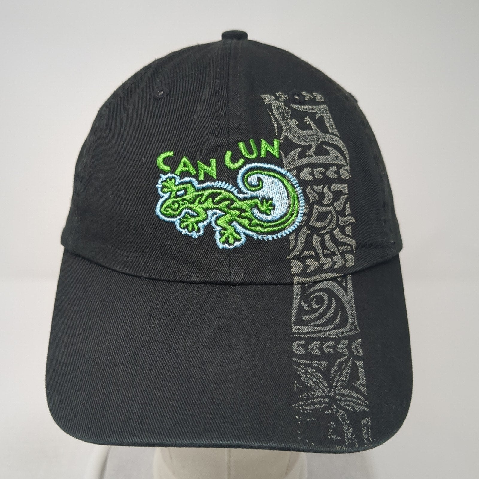 Cancun Mexico Lizard Slideback Hat Black One Size Adjustable Embroidered