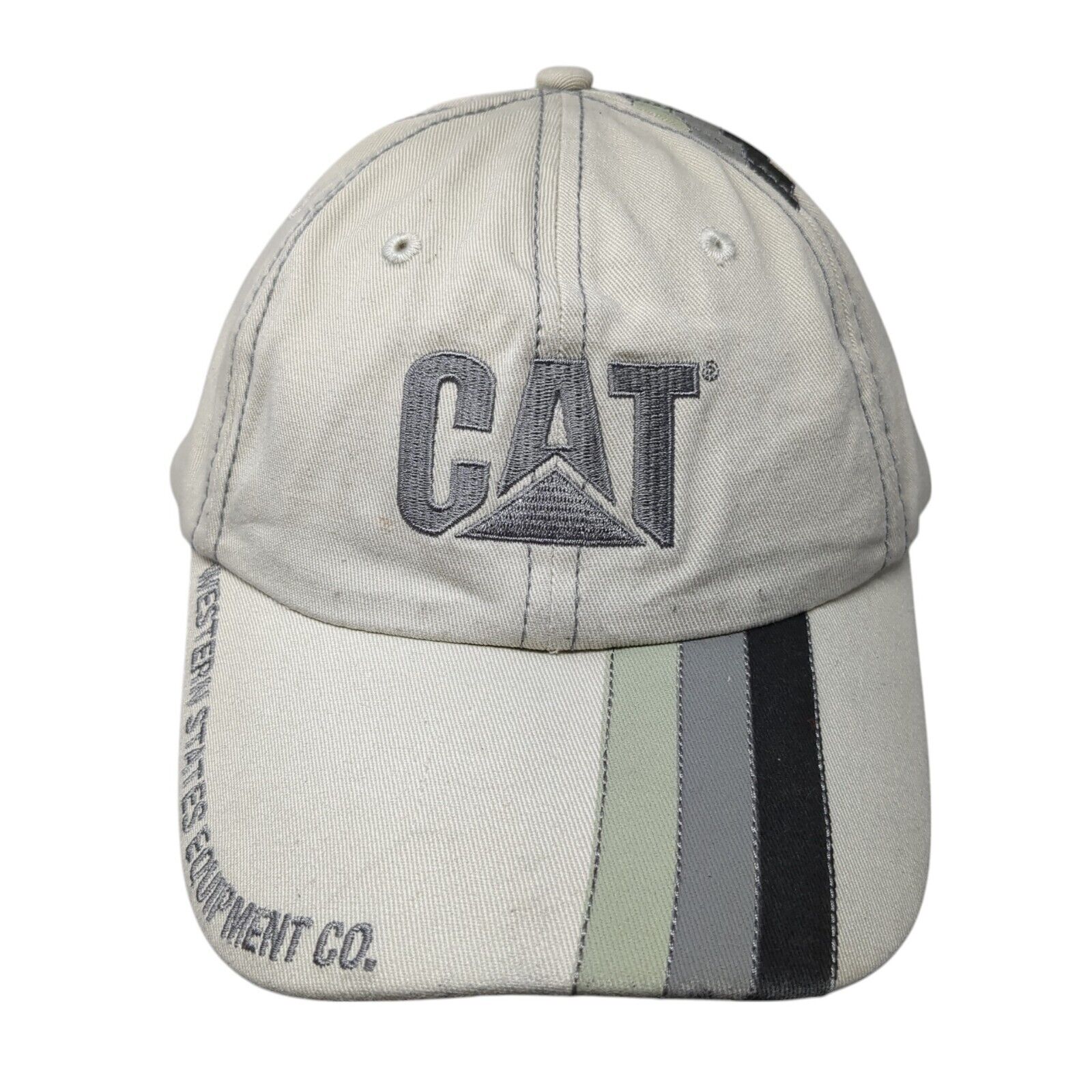 CAT Strapback Hat Tan One Size Adjustable Embroidered Striped 6 Panel