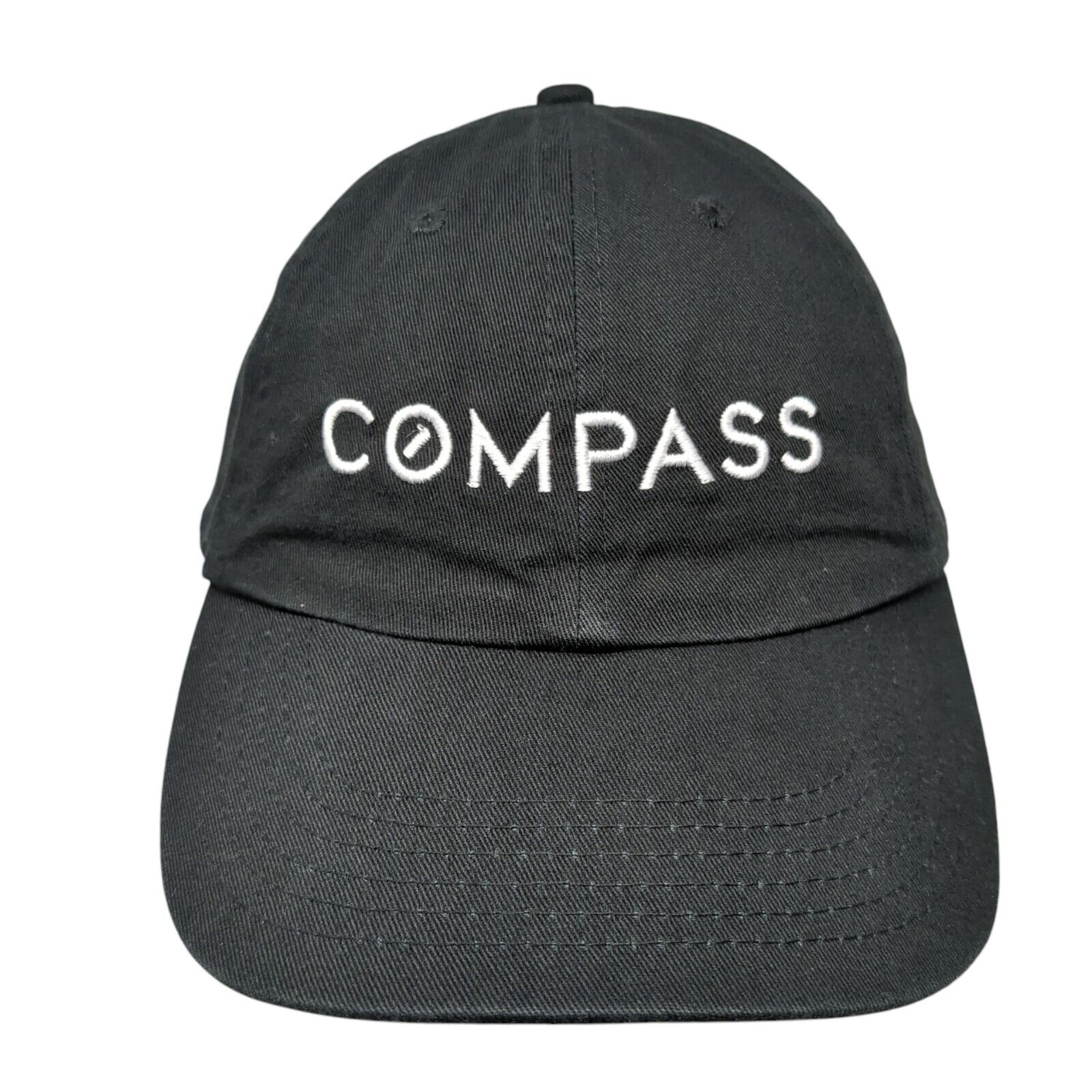 Compass Slideback Hat Black One Size Adjustable Embroidered 6 Panel