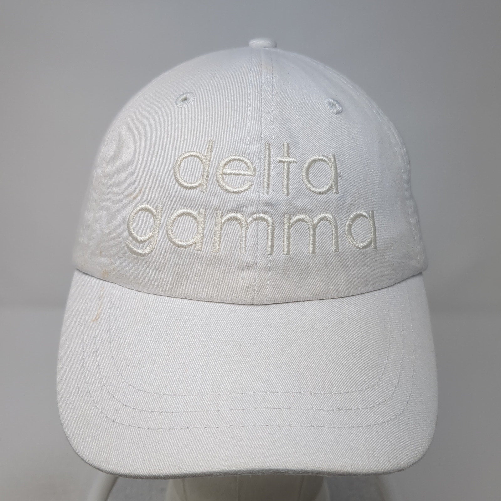Delta Gamma Slideback Hat White One Size Adjustable Leather Strap Adams