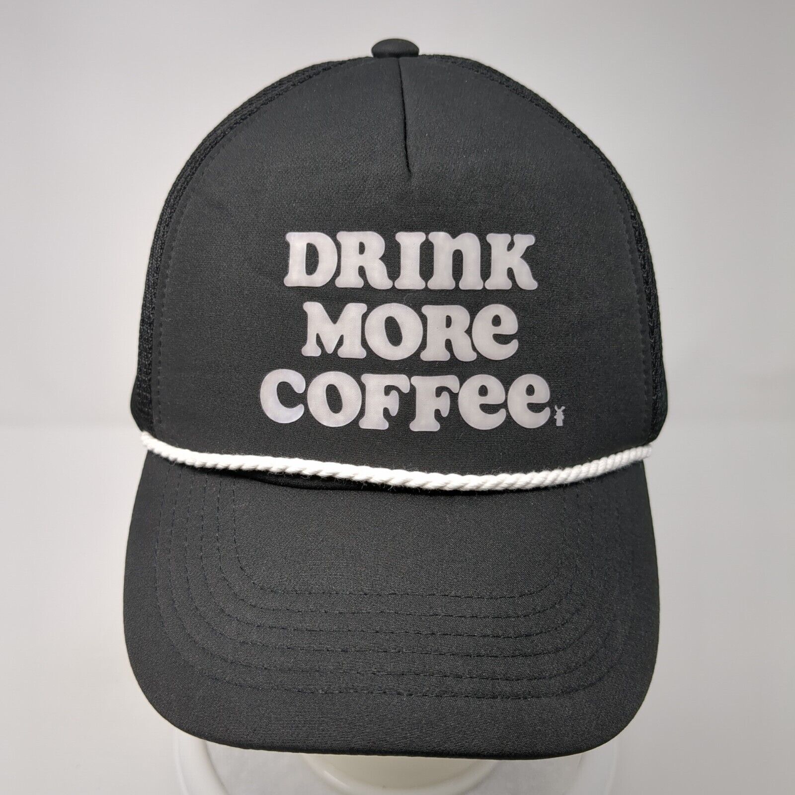 Drink More Coffee Snapack Rope Trucker Hat Black One Size Mesh Back