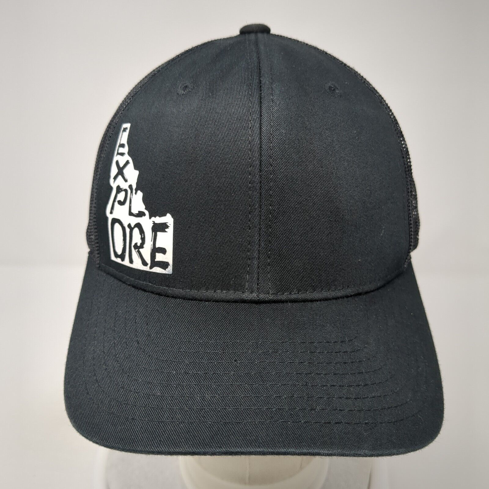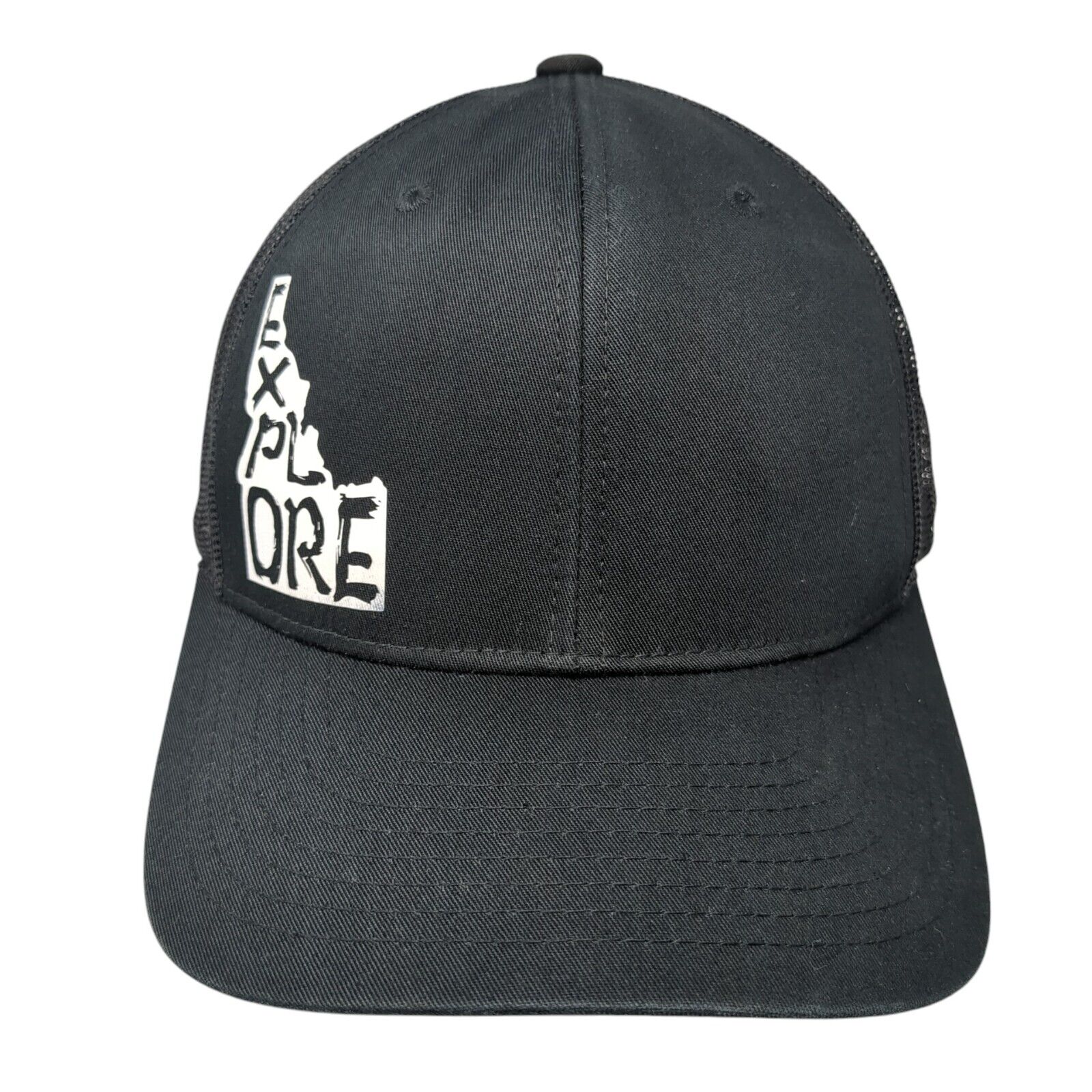 Explore Idaho Snapback Trucker Hat Black One Size Adjustable Mesh Back Yupoong