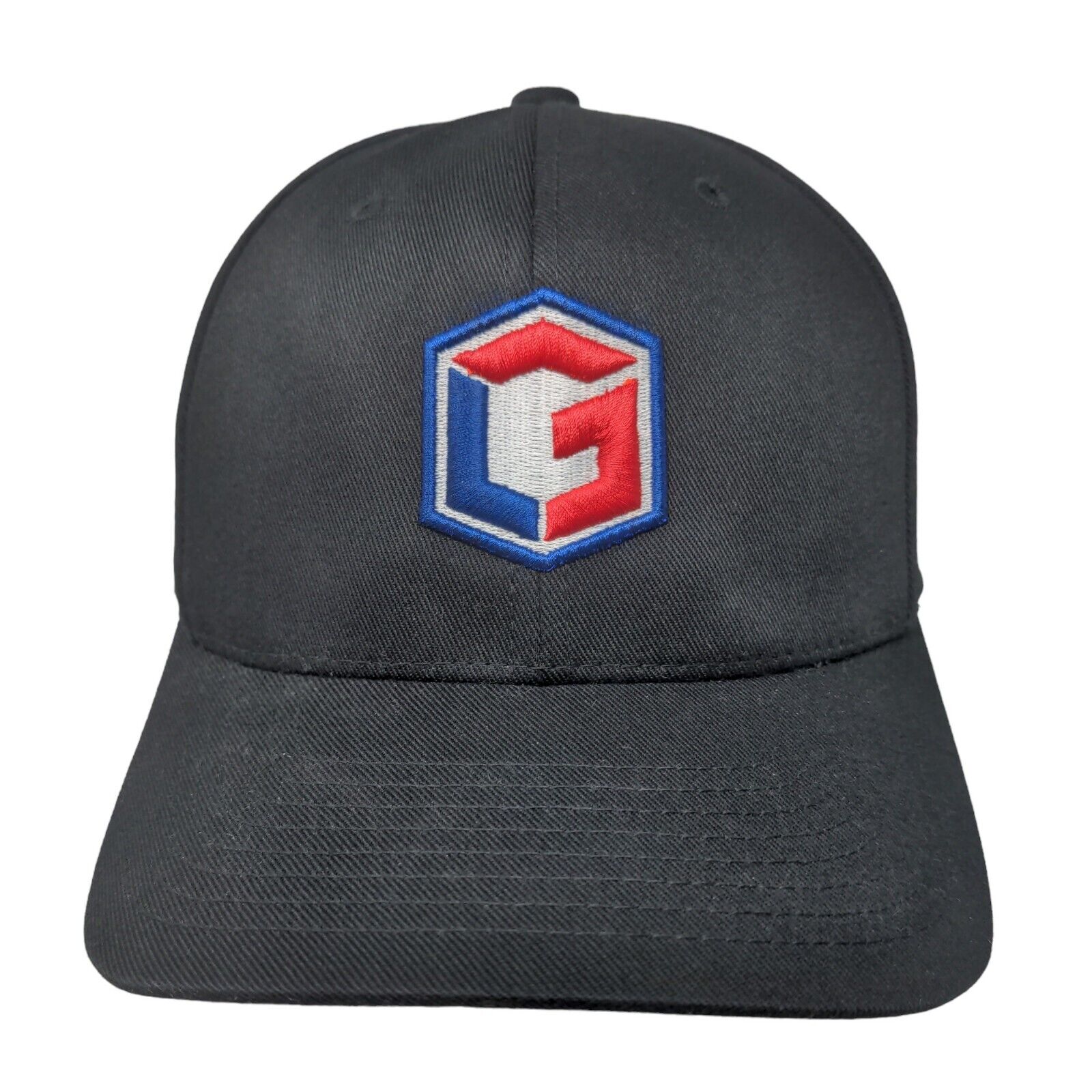 Flexfit Men's Fitted Hat Black Size S/M Embroidered Box Logo Polyester Cotton