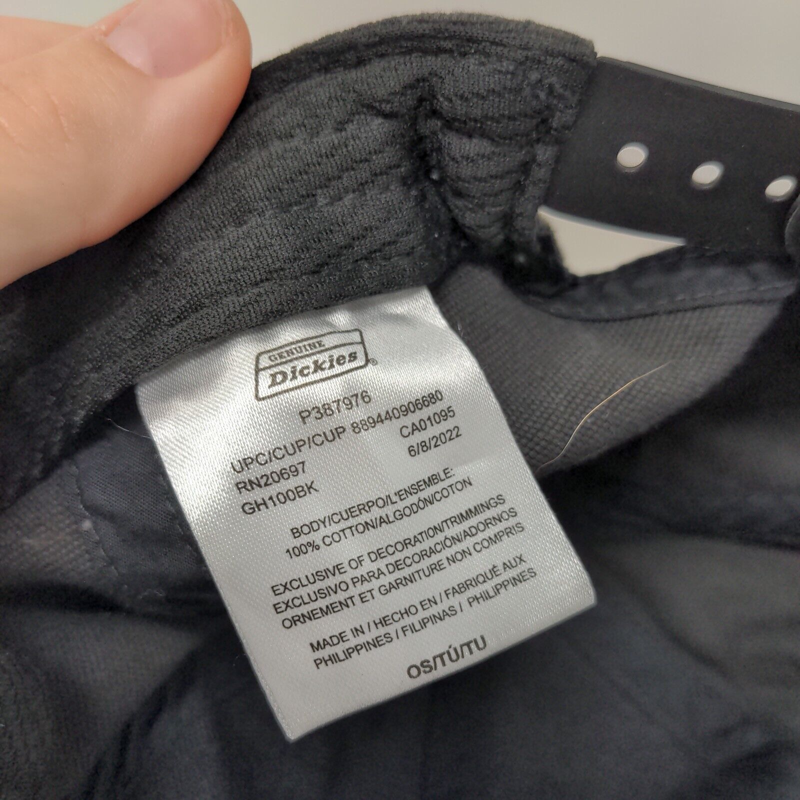 Genuine Dickies Snapback Hat Black One Size Adjustable Solid 6 Panel