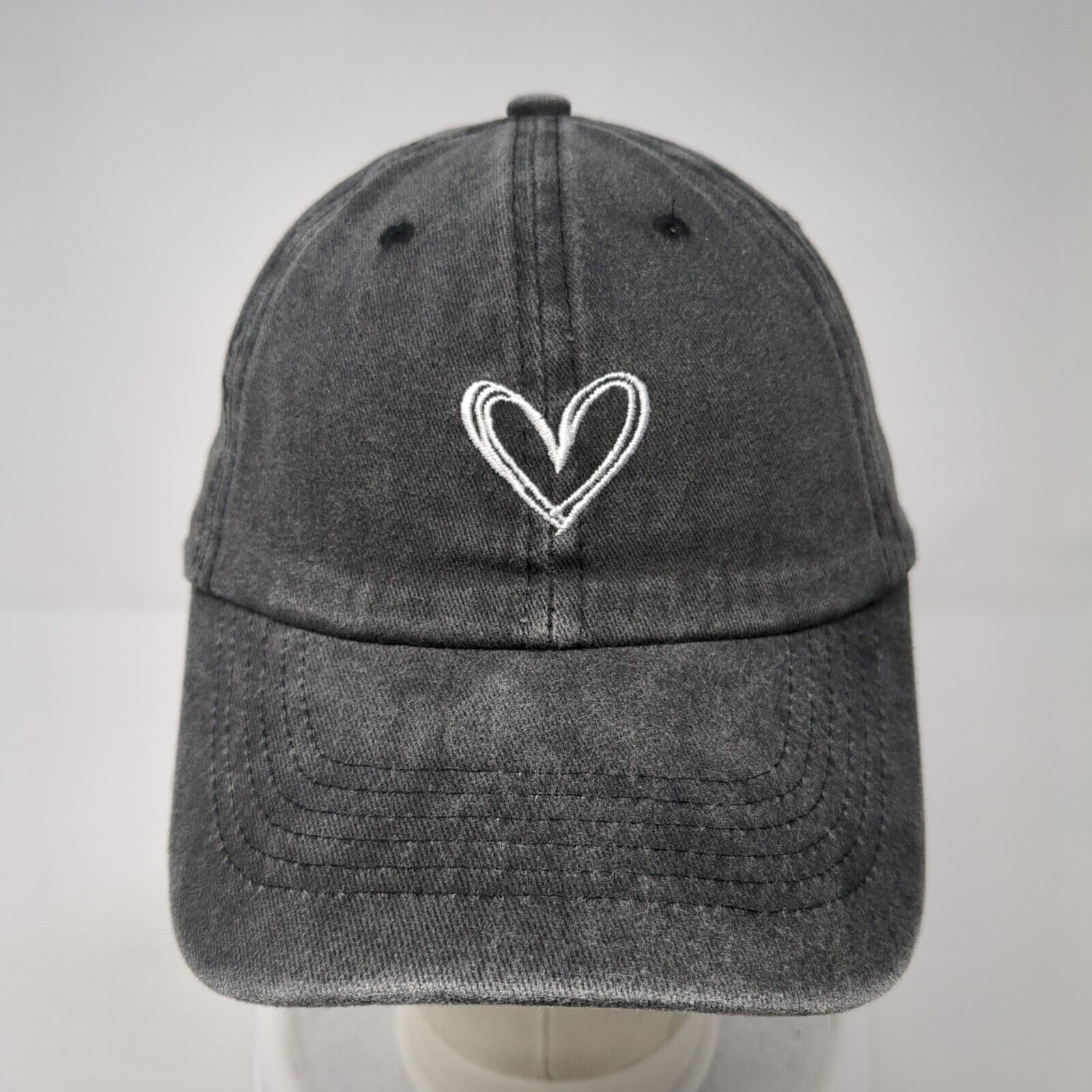 Heart Slideback Hat Gray One Size Adjustable Embroidered 6 Panel Solid