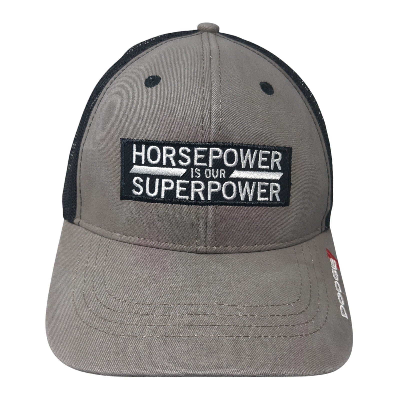 Horsepower Is Our Superpower Snapback Trucker Hat Gray One Size Mesh Back