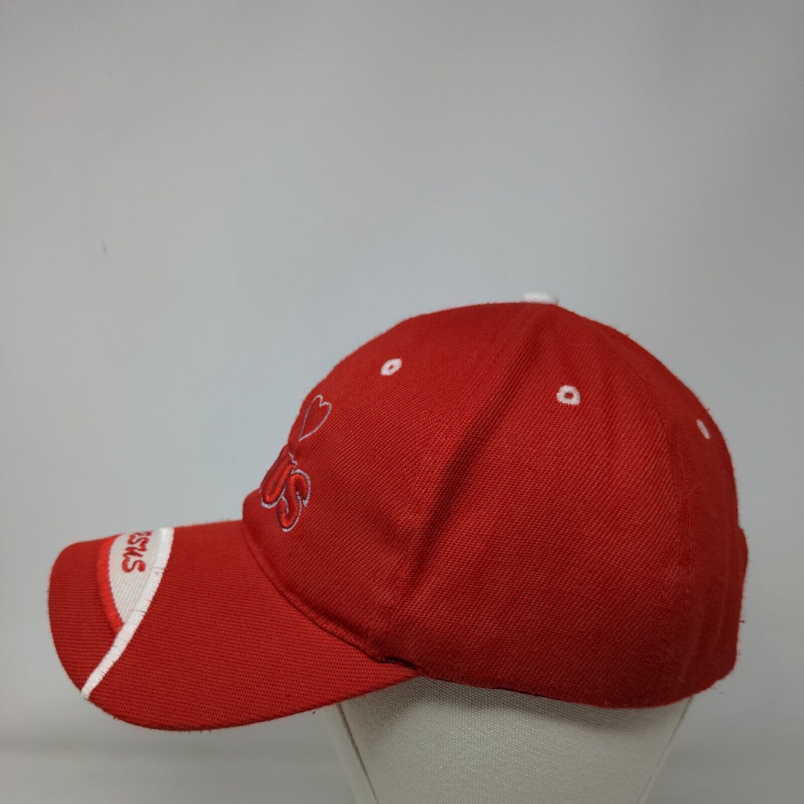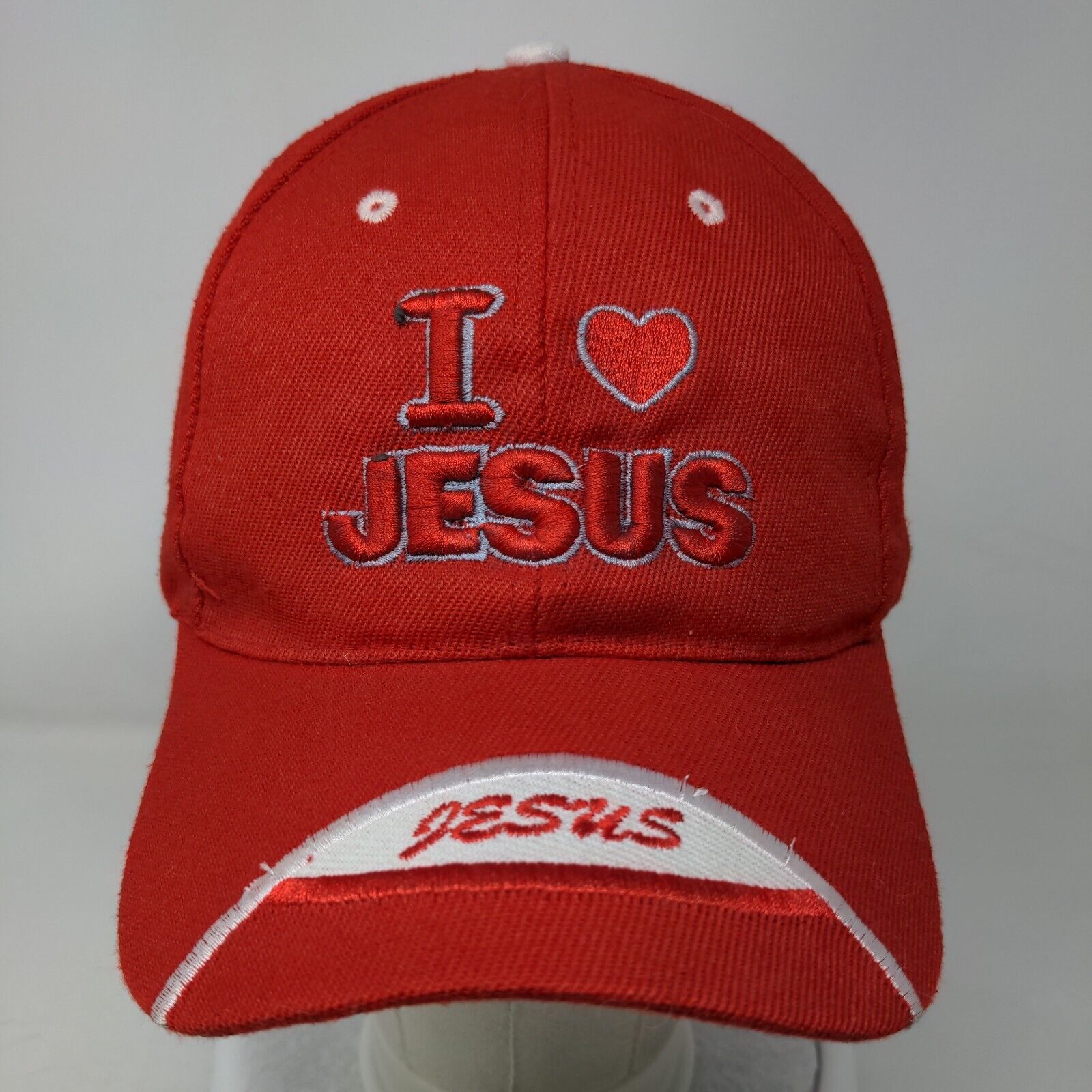 I Love Jesus Strapback Hat Red One Size Adjustable Embroidered Vented Holes
