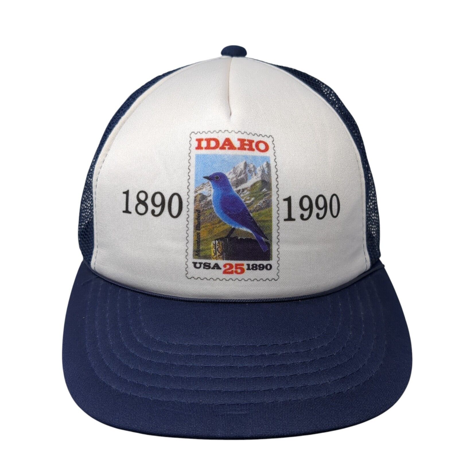 Idaho USA 25 1890-1990 Snapback Trucker Hat Blue One Size Adjustable Mesh Back