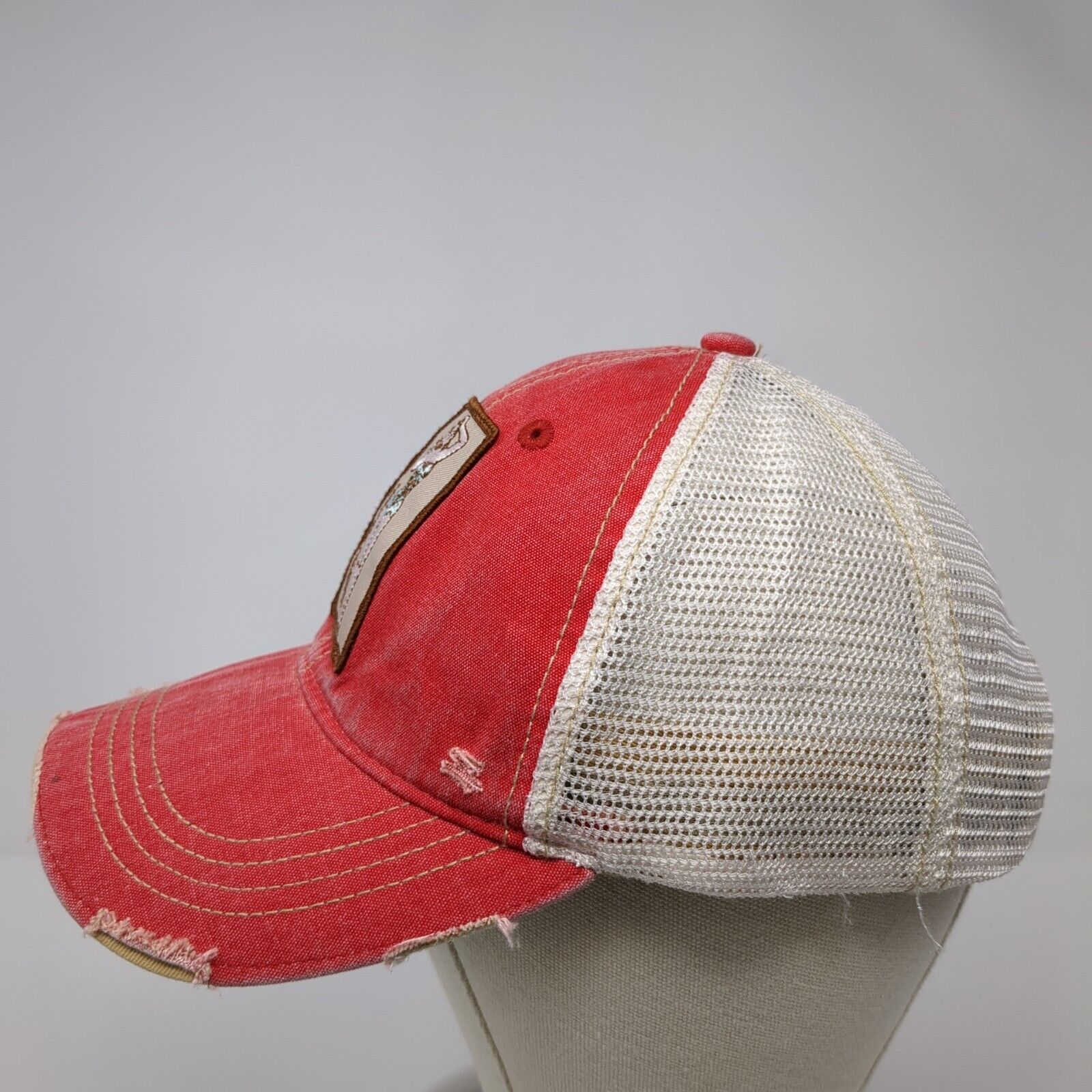 Judith March Snapback Trucker Hat Red One Size Adjustable Mesh Back Distressed