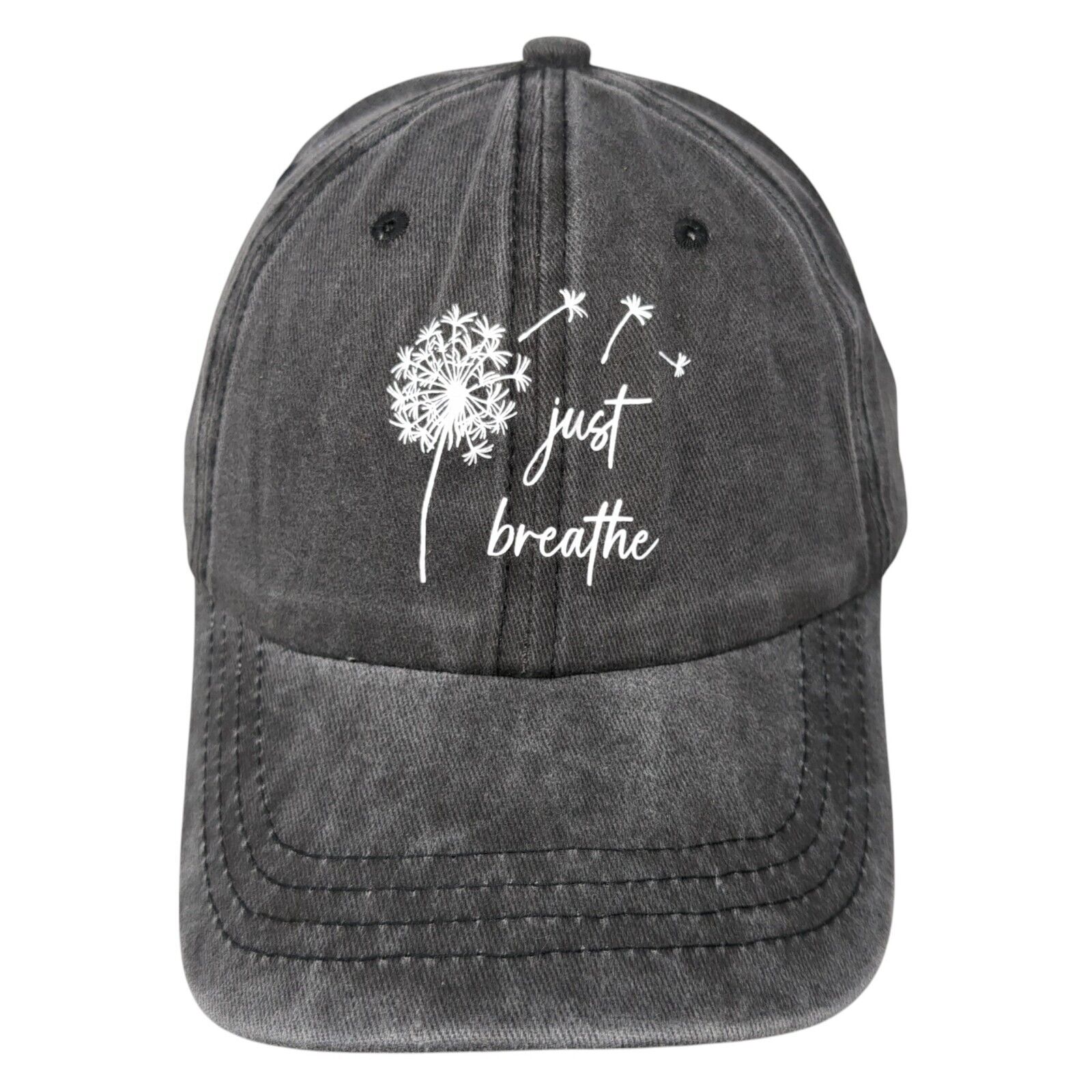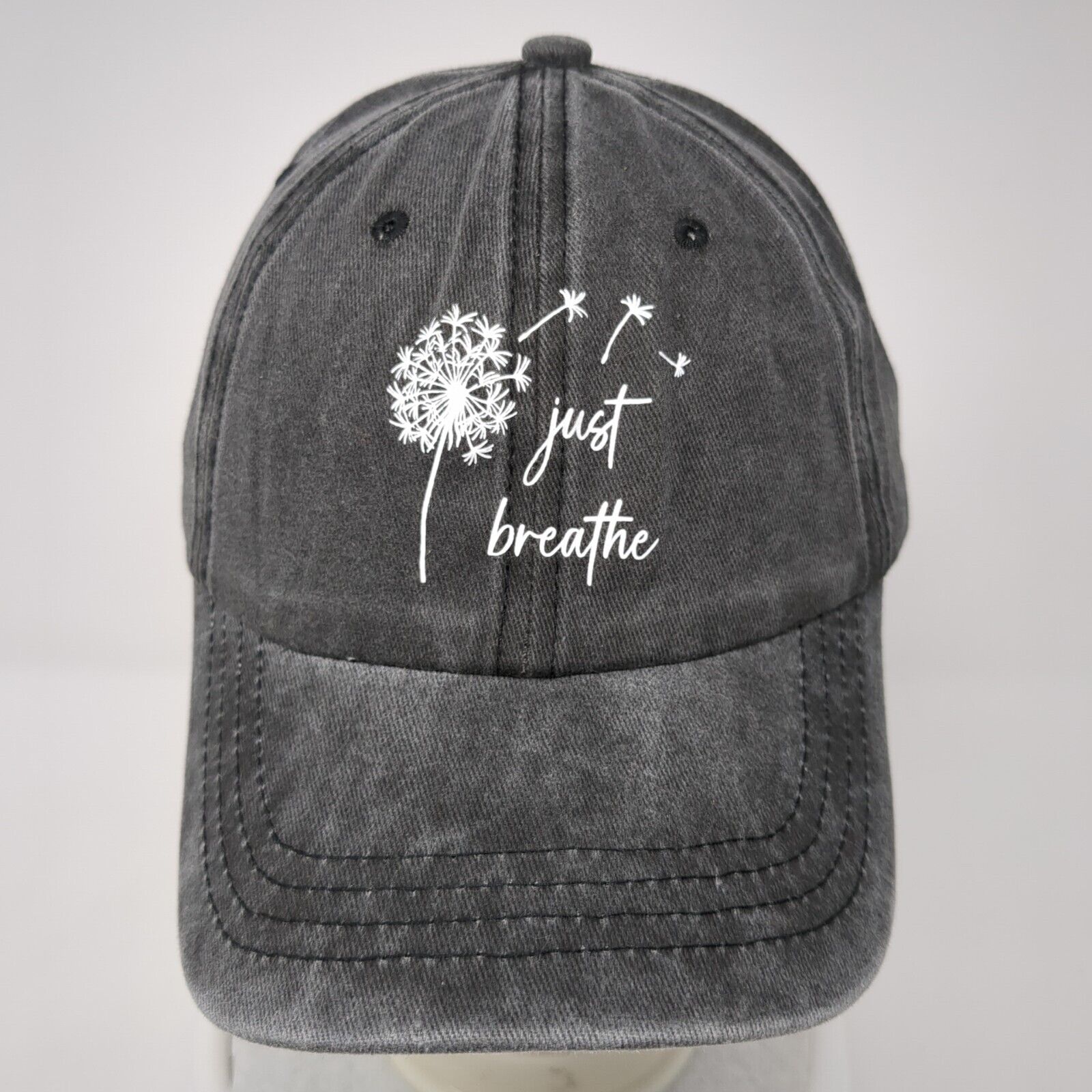 Just Breathe Slideback Hat Gray One Size Adjustable Vented Holes 6 Panel Cotton