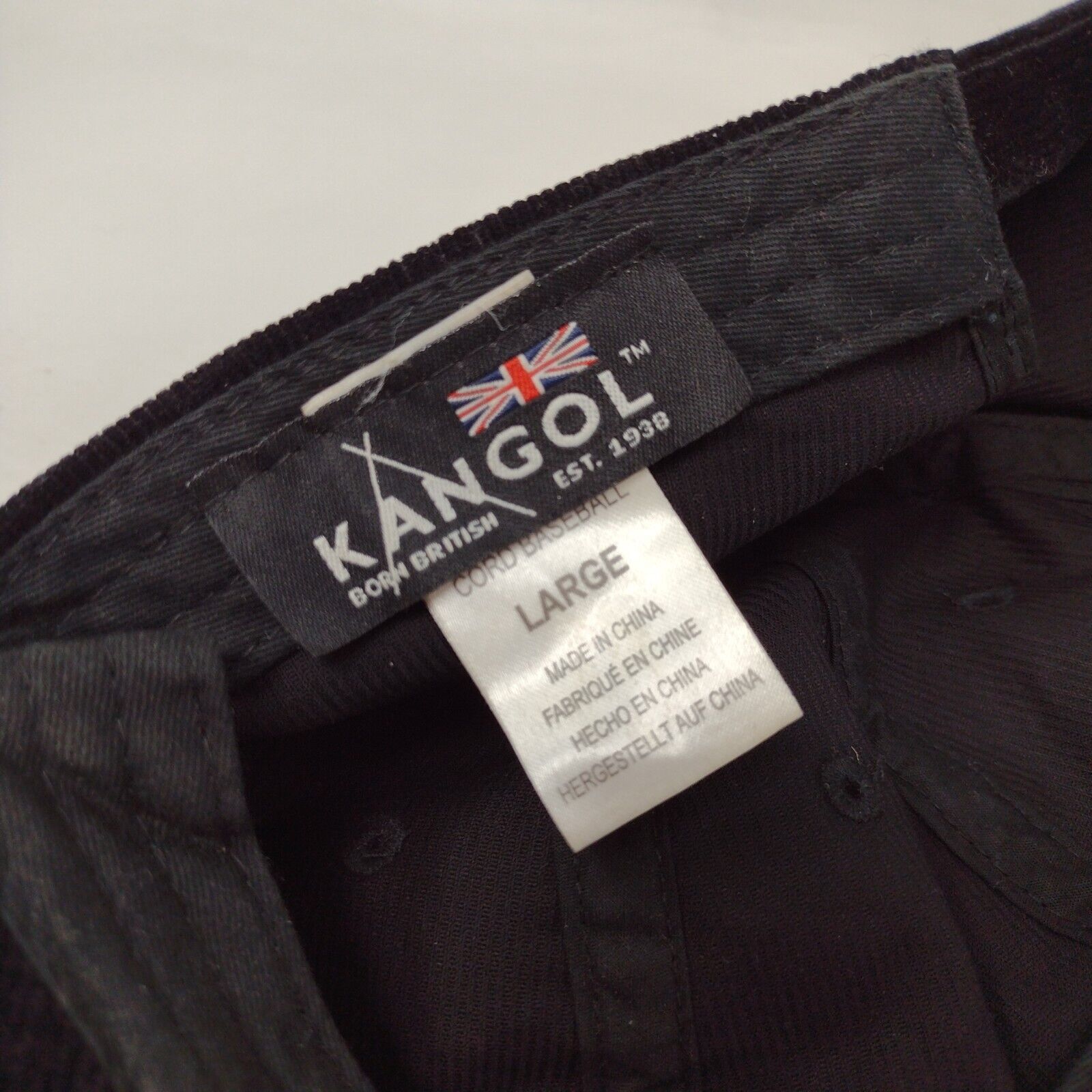 Kangol Slideback Hat Black Size L Corduroy Hat Cotton Blend Embroidered Logo