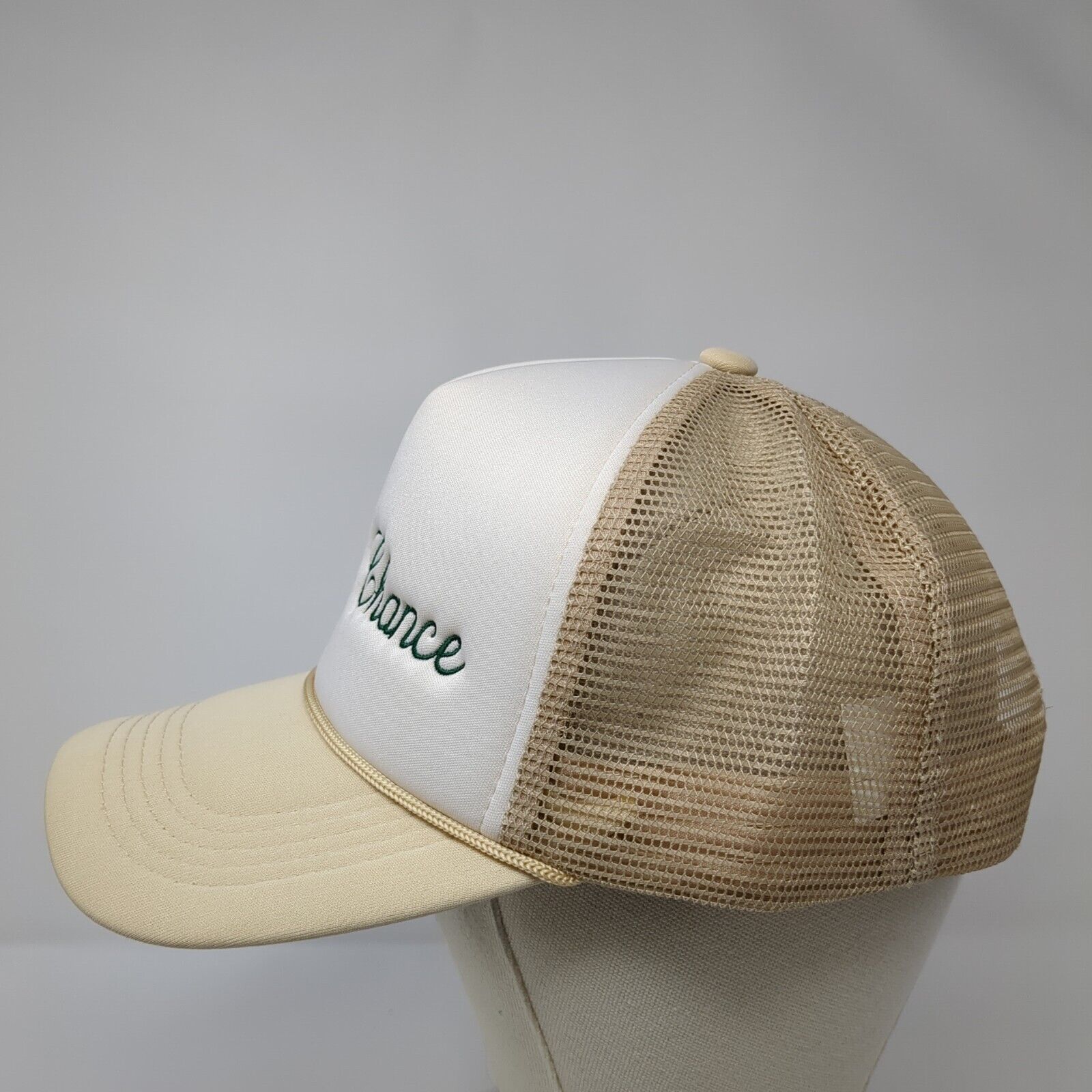 Last Chance Snapback Trucker Hat Tan OS Adjustable Embroidered Mesh Back Rope