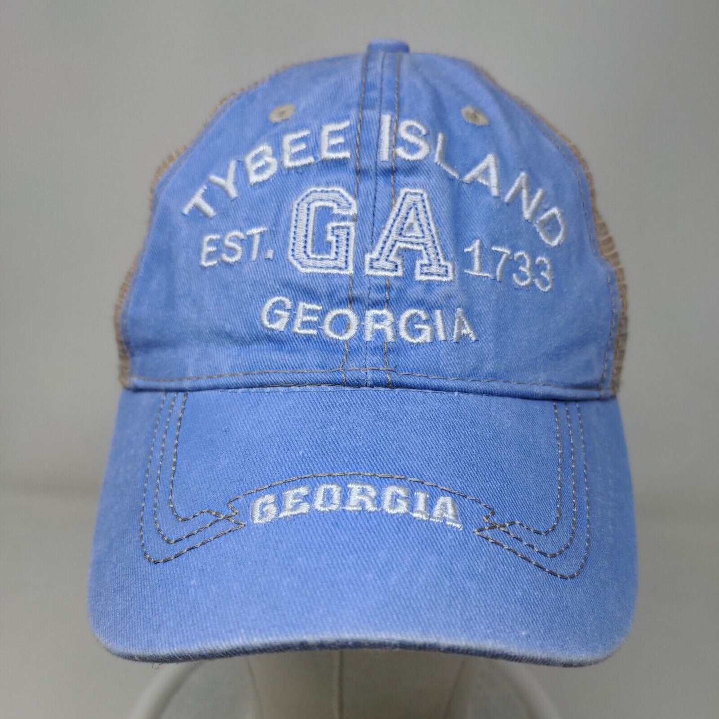 Lucky Men's Snapback Mesh Back Hat Blue Embroidered Tybee Island Georgia Logo