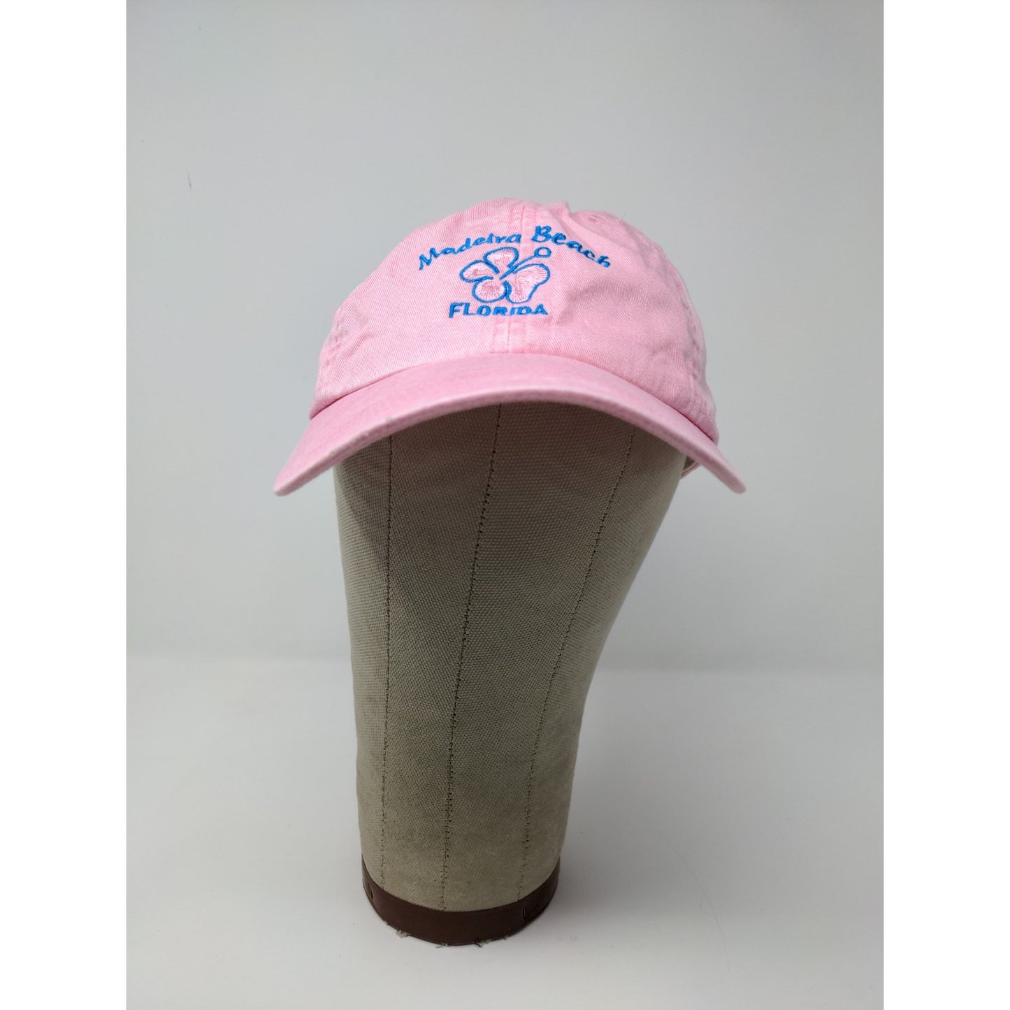 Maderia Beach, FL Strapback Hat Pink Flower Embroidered Spell Out