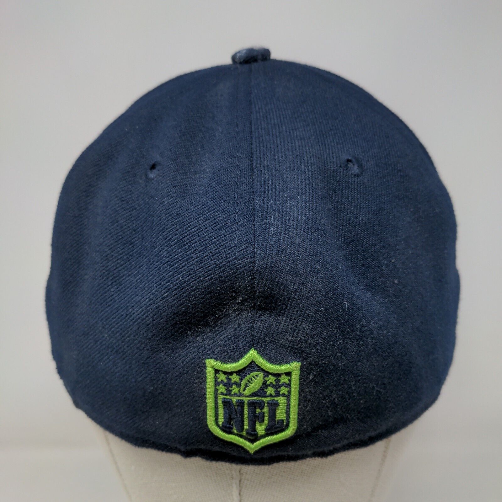 New Era Men's Fitted Flat Bill Hat Blue 7 1/4 Seattle Seahawks NFL Embroidered