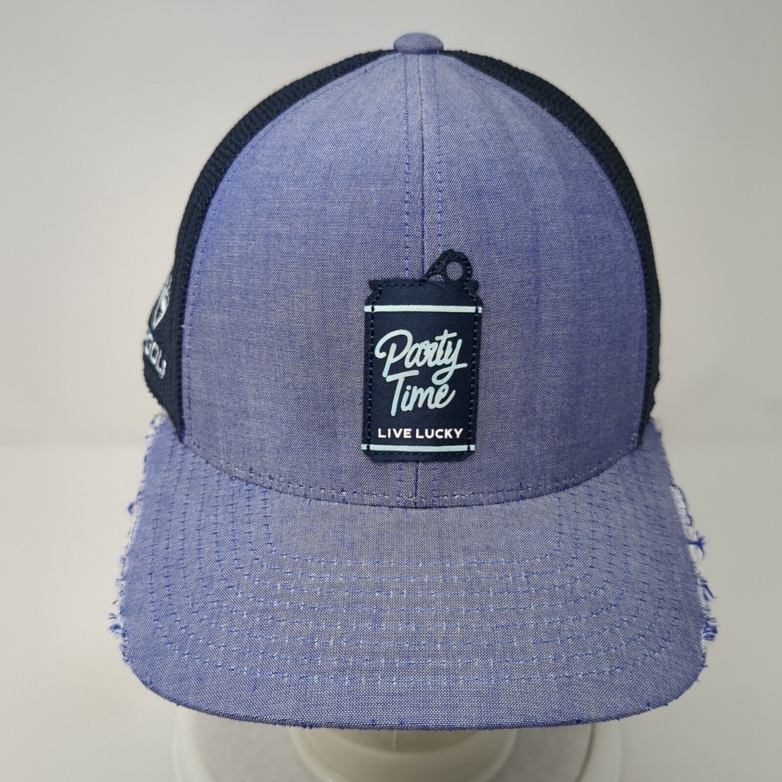 Party Time Live Lucky Top Golf Snapback Trucker Hat Blue OS Mesh Back Distressed