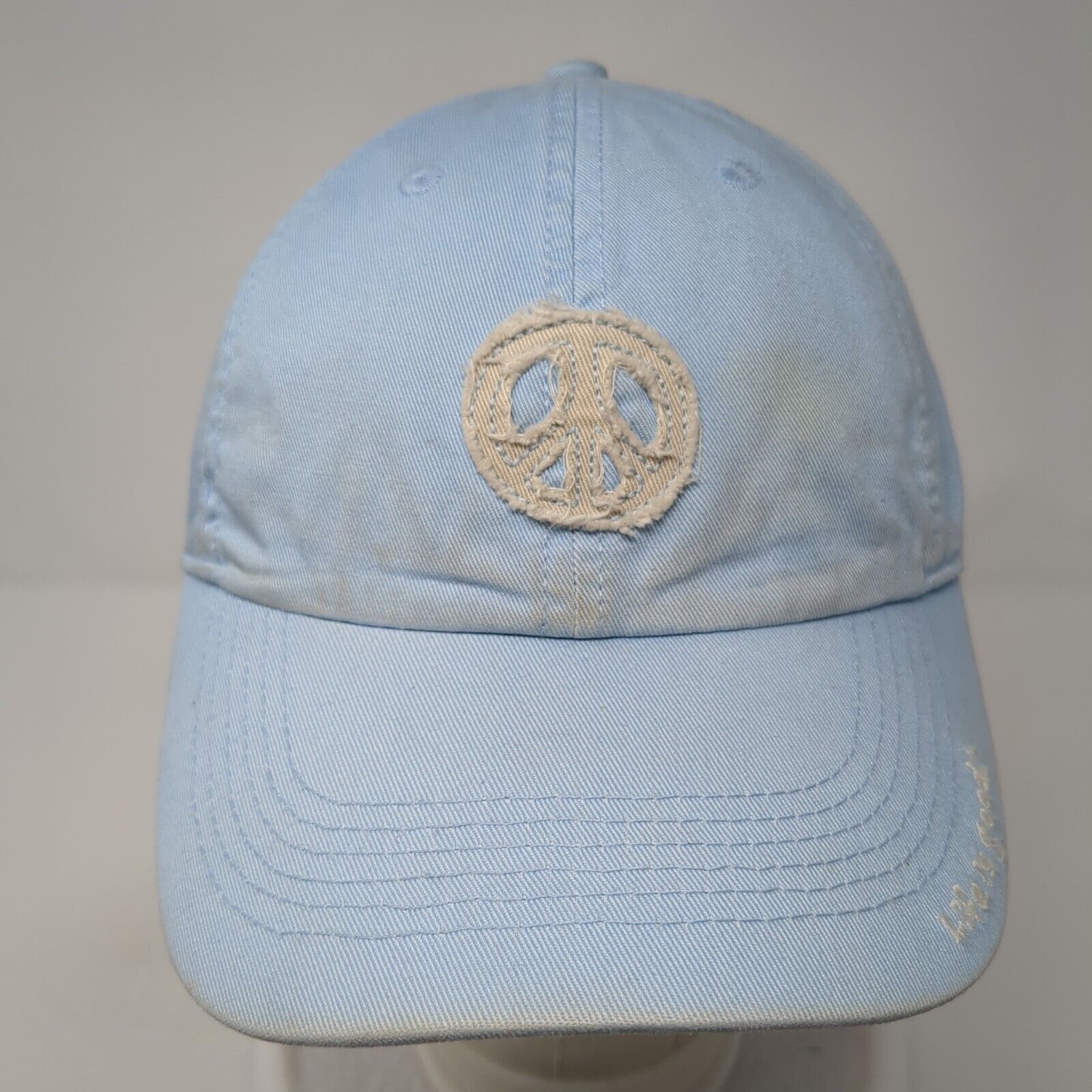 Peace Symbol Slideback Hat Blue One Size Adjustable Solid Life Is Good
