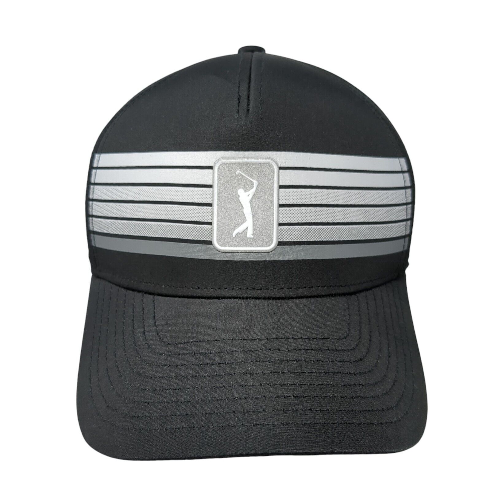 PGA Tour Strapback Golf Hat Black One Size Adjustable Striped Pro Series