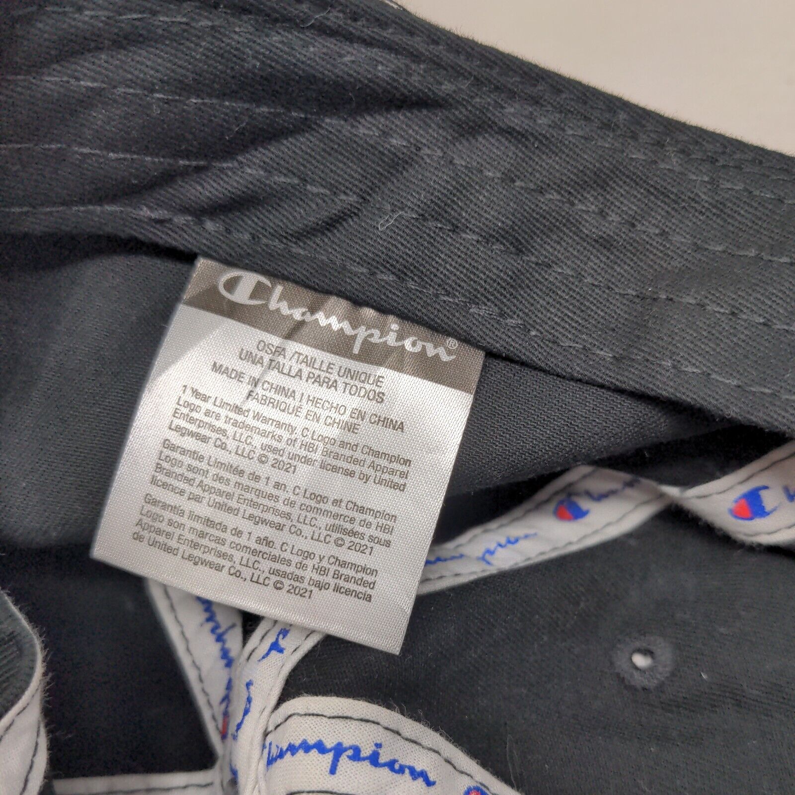 Podium Slideback Hat Black OSFA Adjustable Embroidered 6 Panel Champion