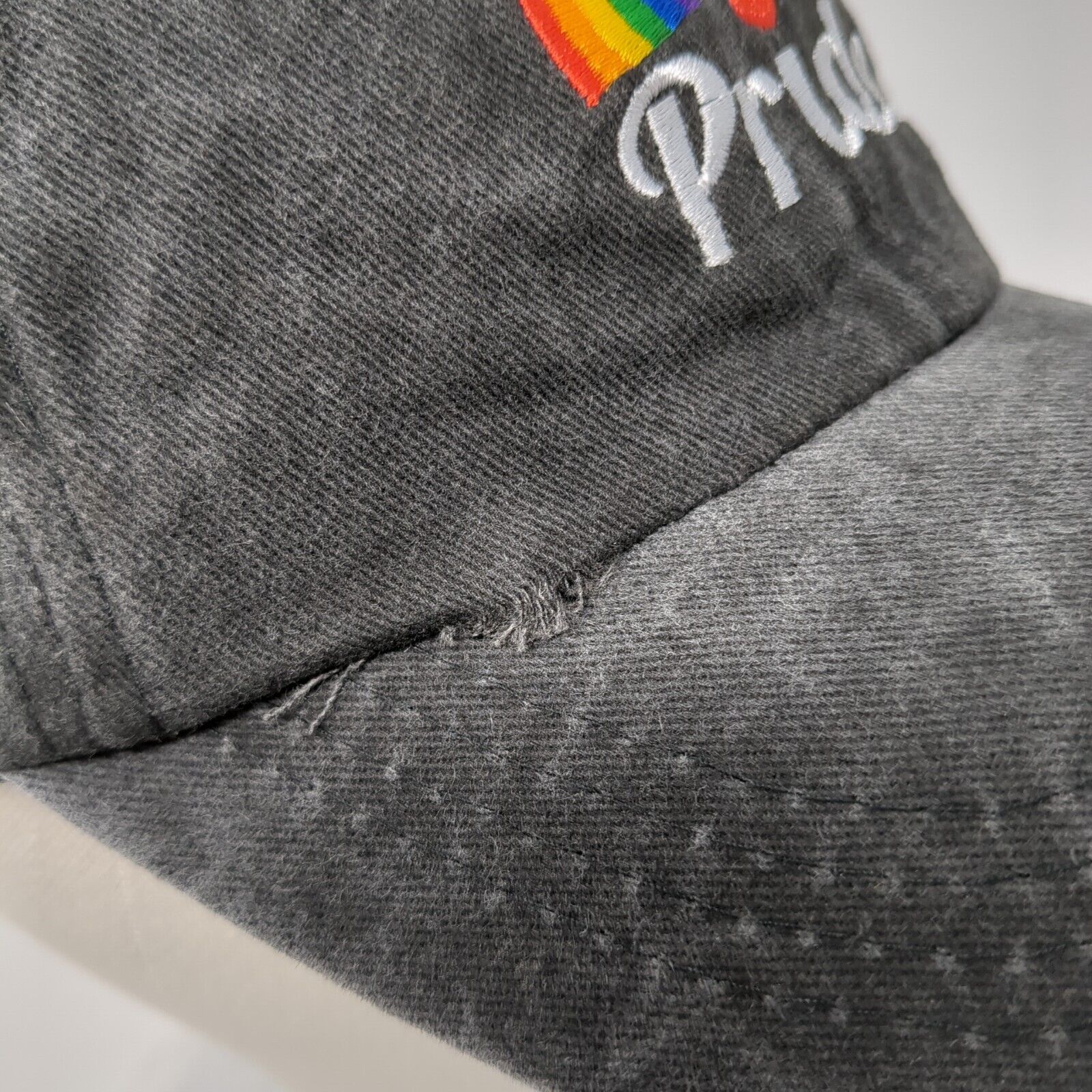 Pride Slideback Hat Gray One Size Adjustable Embroidered Vented Holes Cotton