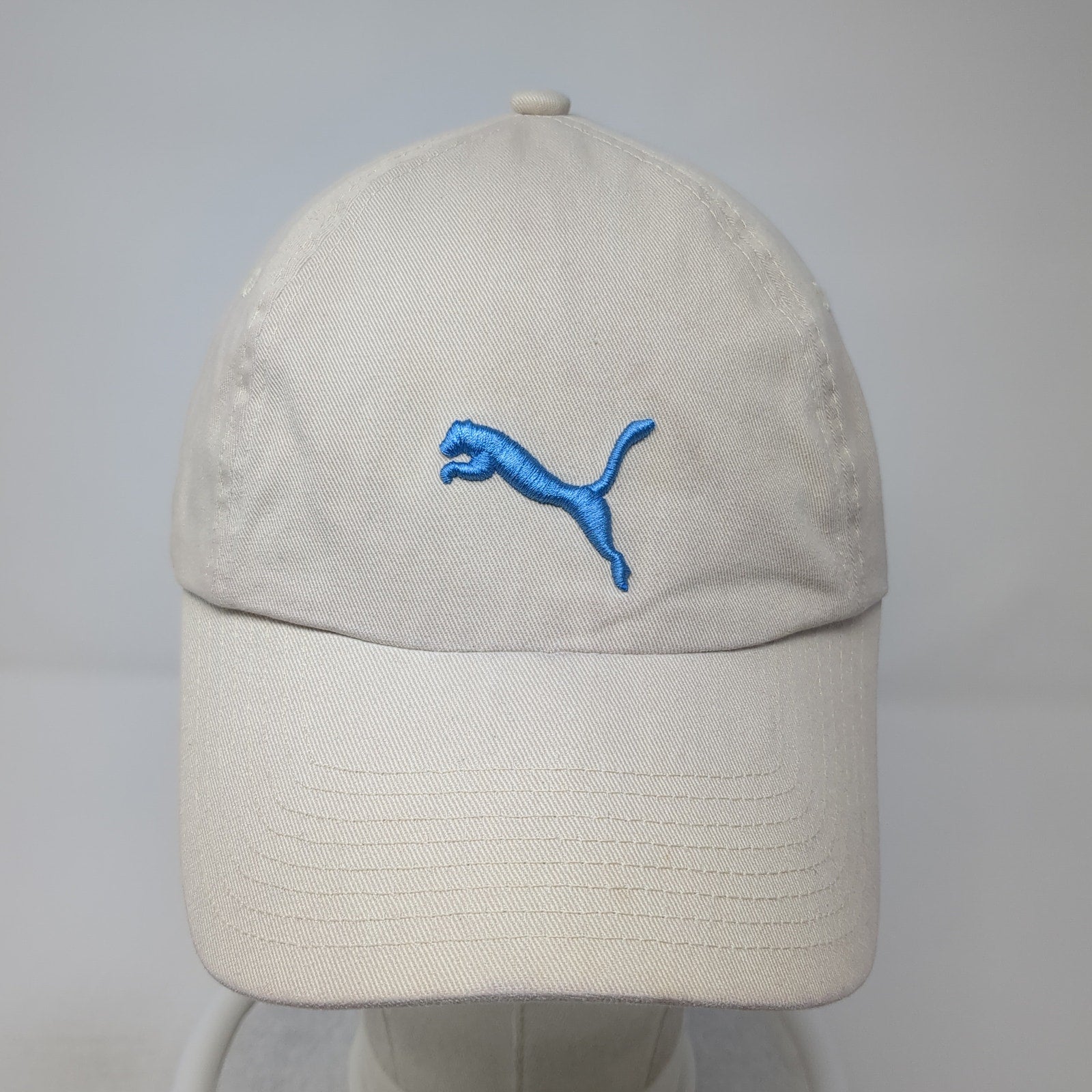 Puma Blue Logo Slideback Hat Beige One Size Adjustable Embroidered
