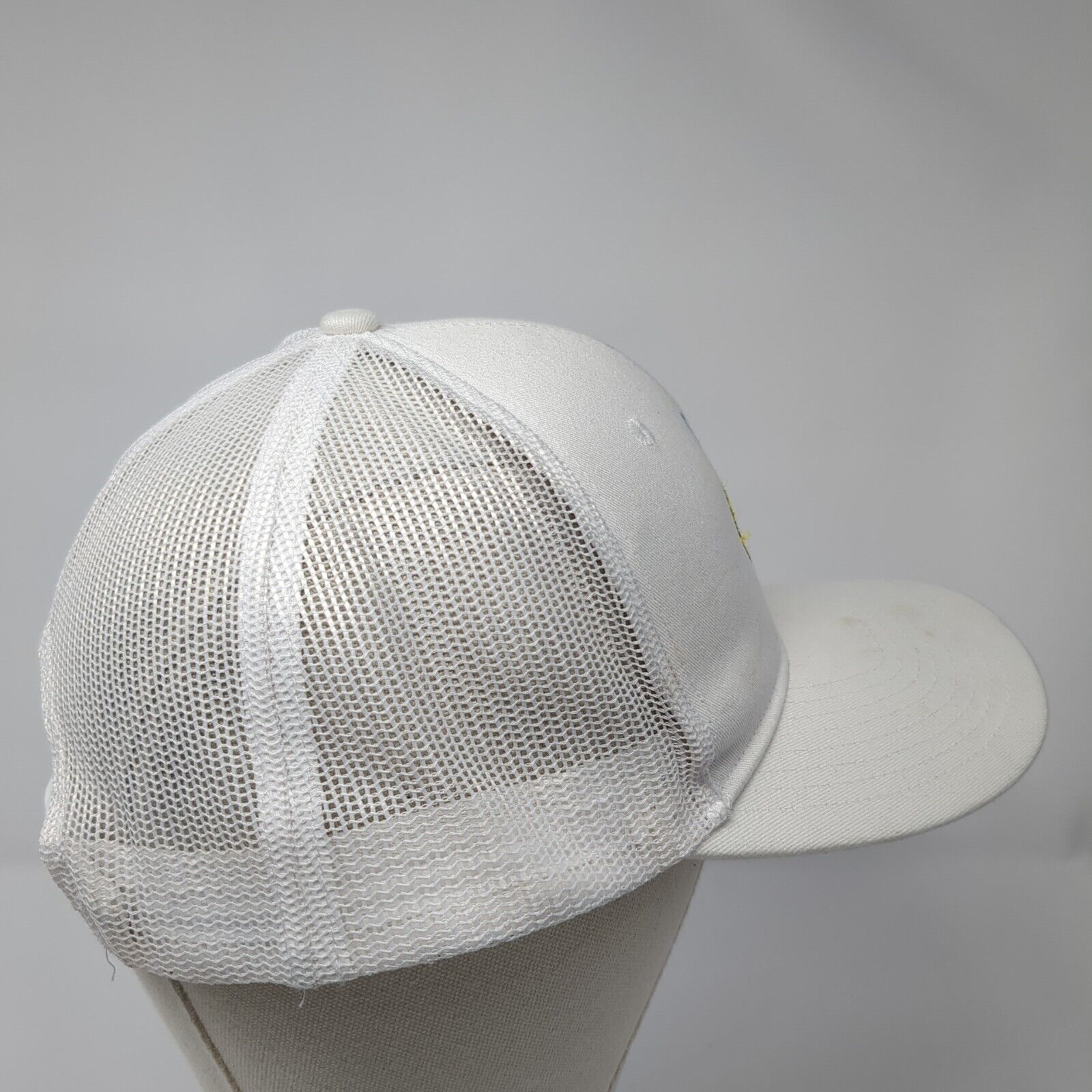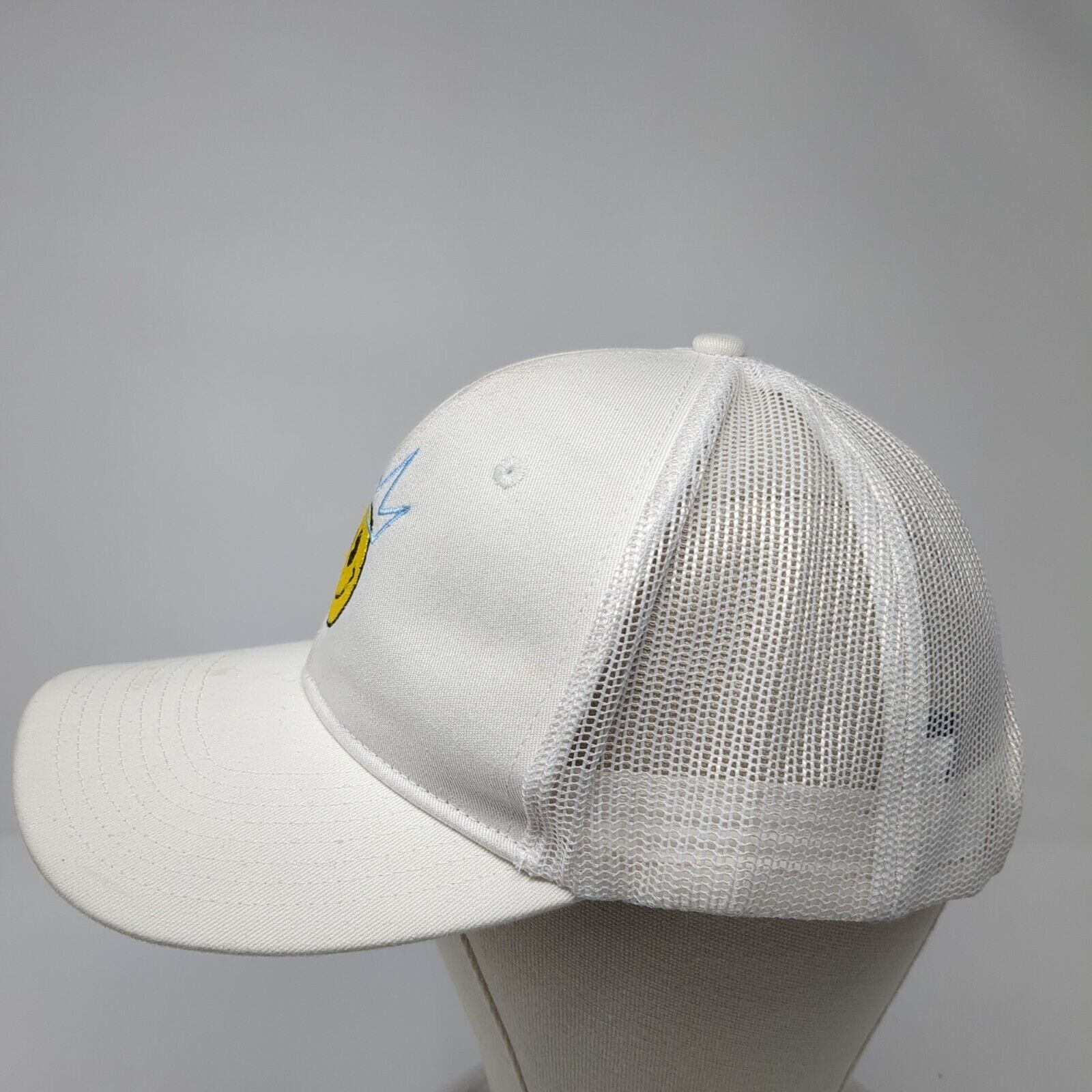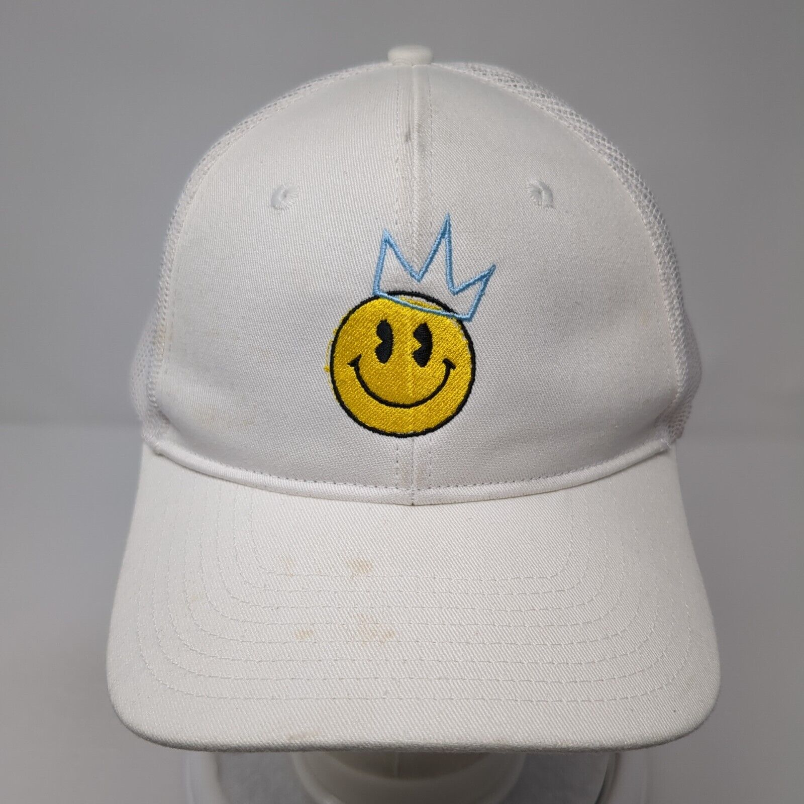 Smiley Crown Snapback Mesh Back Trucker Hat White Cream One Size 6 Panel